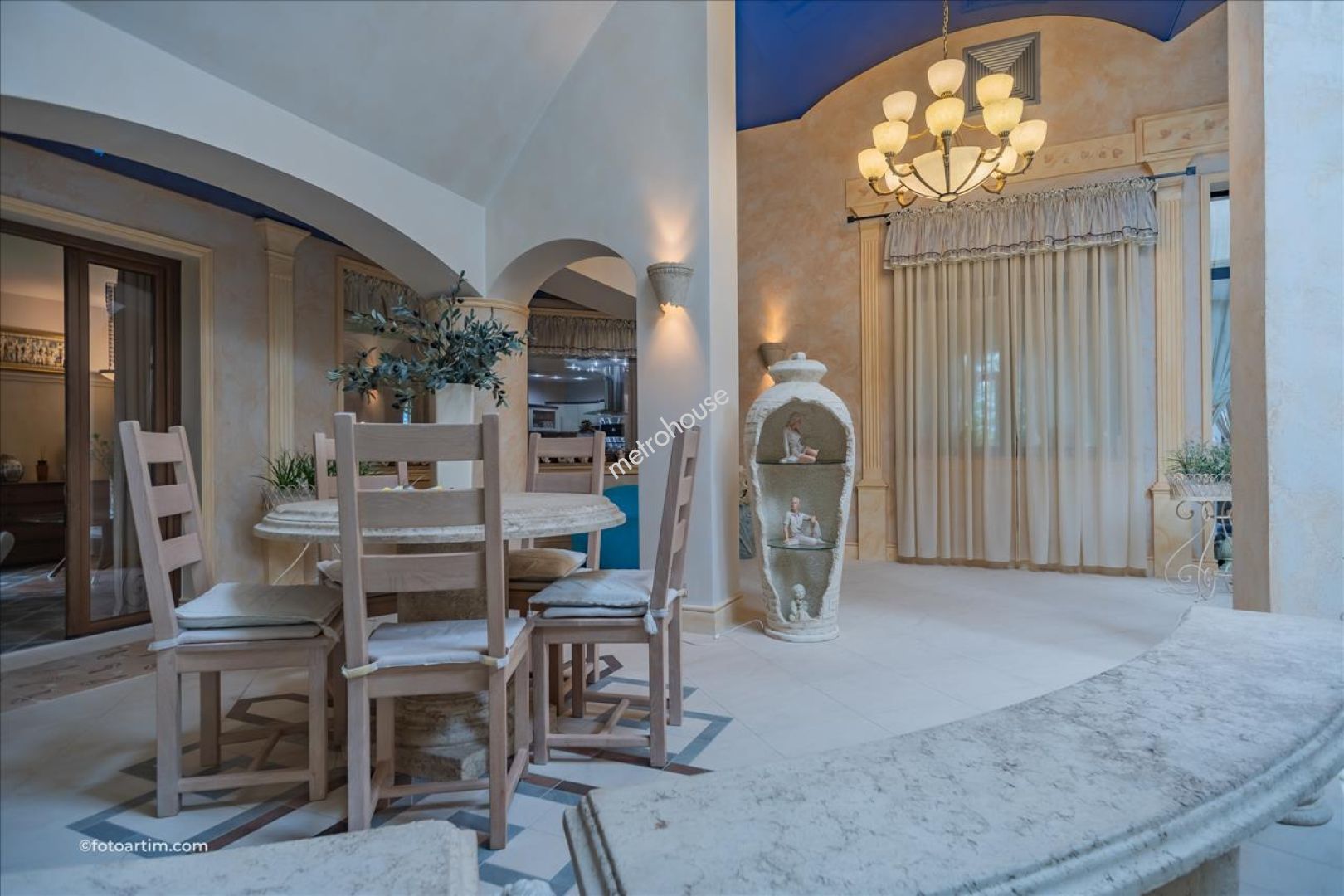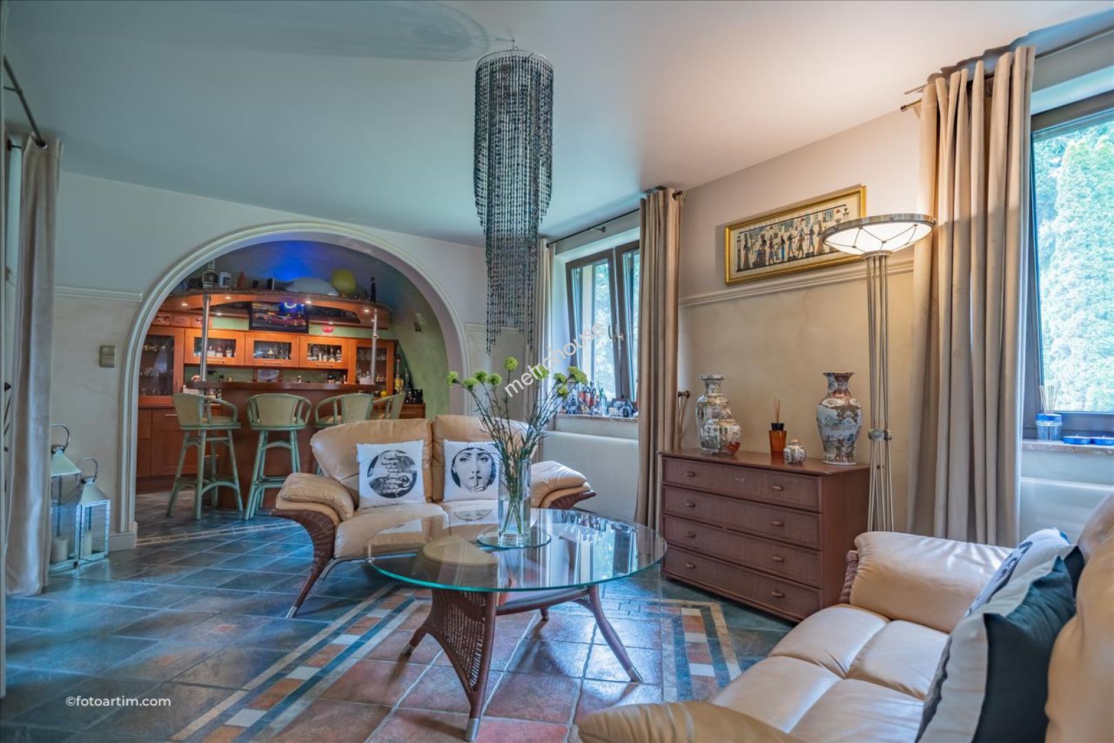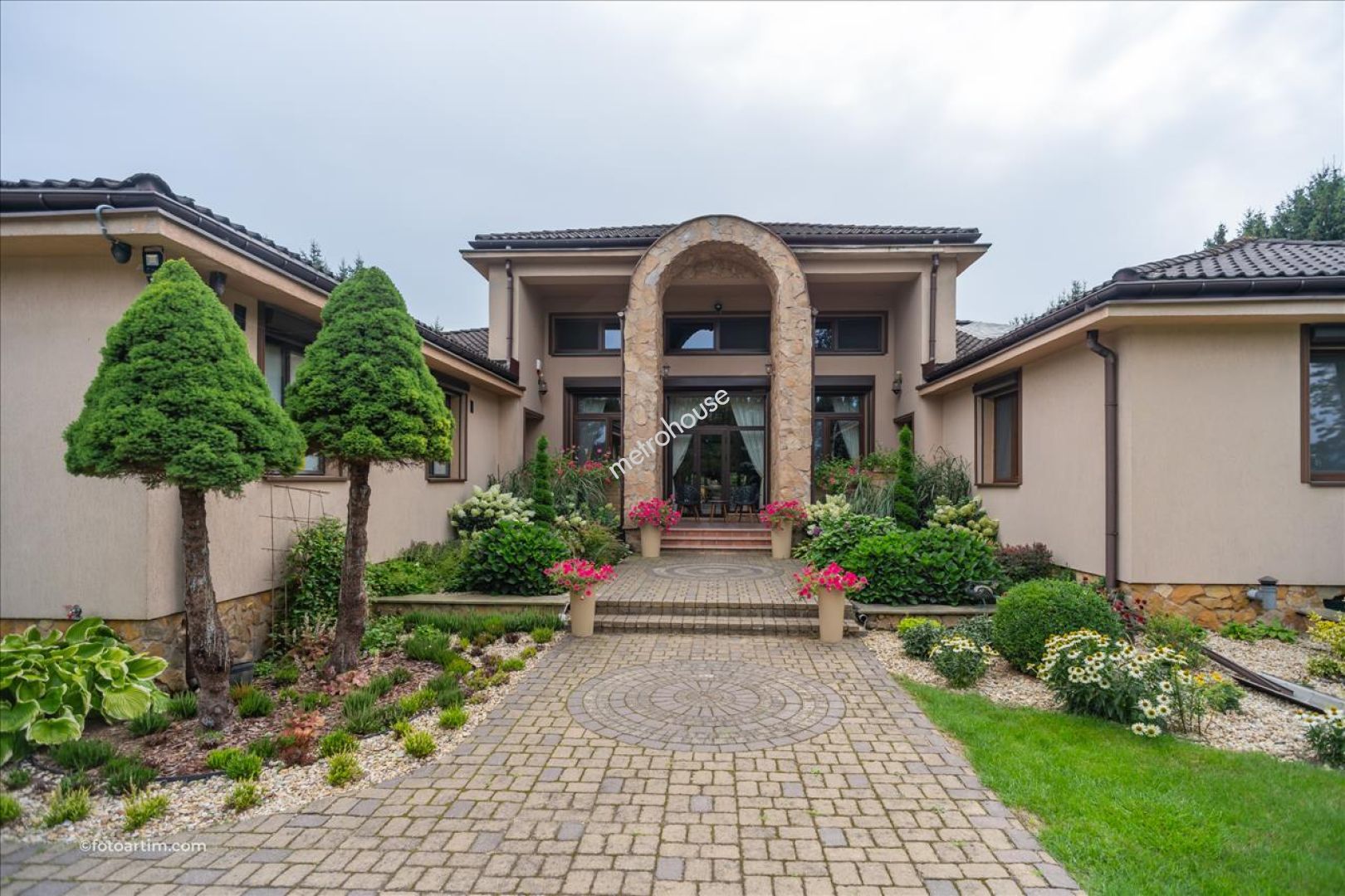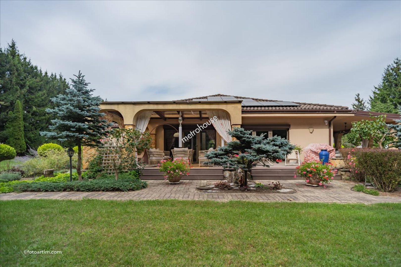 Nieruchomość nieprzeciętna, zaprojektowana i urządzona na najwyższym poziomie. Dom posadowiony na pięknie zagospodarowanej działce o powierzchni 6395 m2. Okazała fasada budynku połączona z ciągiem tarasowym, na który prowadzi kilka wyjść z wnętrza, w połączeniu z pięknym ogrodem, tworzy wyjątkową panoramę. Wszystkie tarasy mają swoje przeznaczenie, między innymi wypoczynkowe, biesiadne, czy...