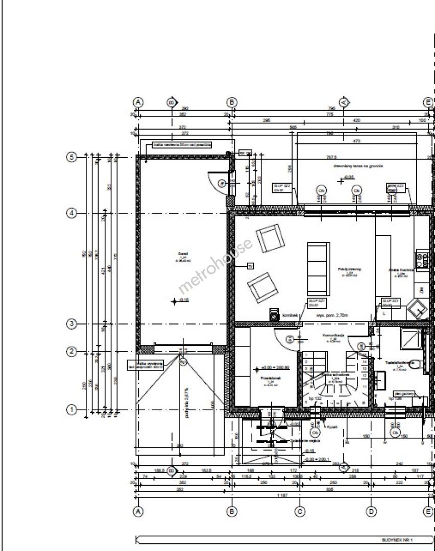 Budynek został zaprojektowany na dwie strefy dzienną (parter) i nocną (piętro), na parterze przestronny salon z kuchnią z ekspozycją na zachód, z miejscem na klimatyczny kominek, pomieszczenia komunikacyjne oraz WC dla gości. W strefie nocnej 3 sypialnie z ekspozycją...