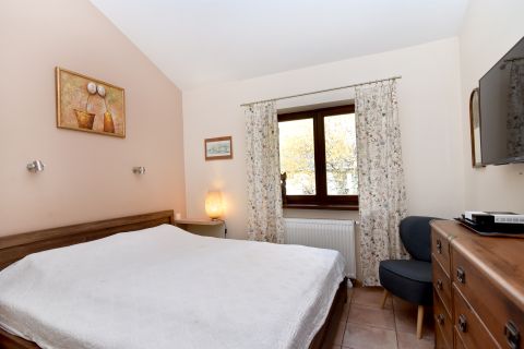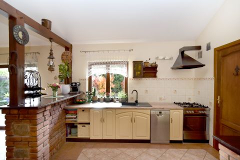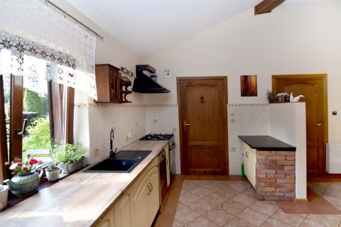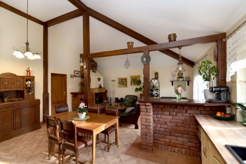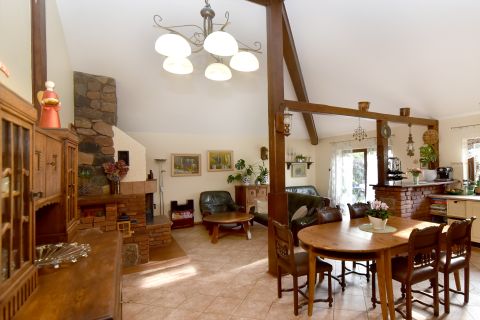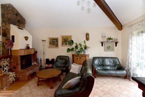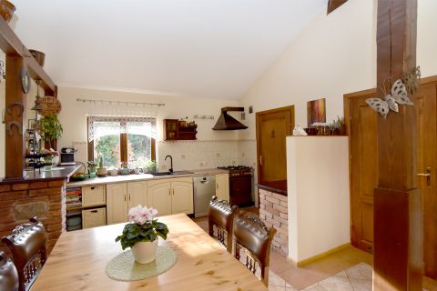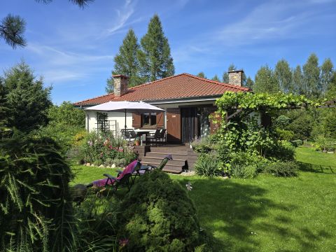 Przytulny dom położony w pięknej okolicy, w pobliżu lasu, 200 m do plaży nad jeziorem Mielno, posadowiony na pięknie zagospodarowanej działce wśród licznych krzewów, drzew i kwiatów.
