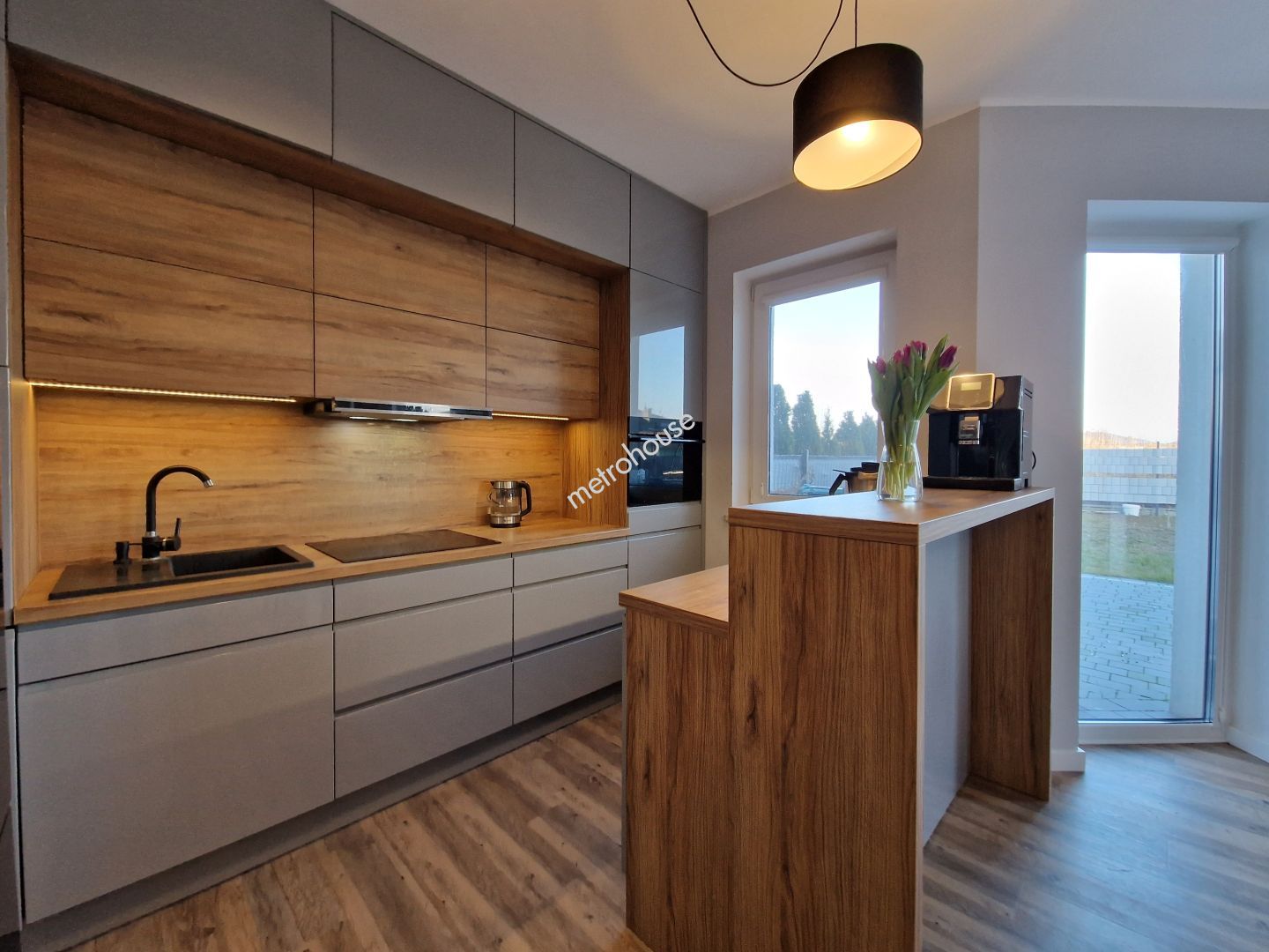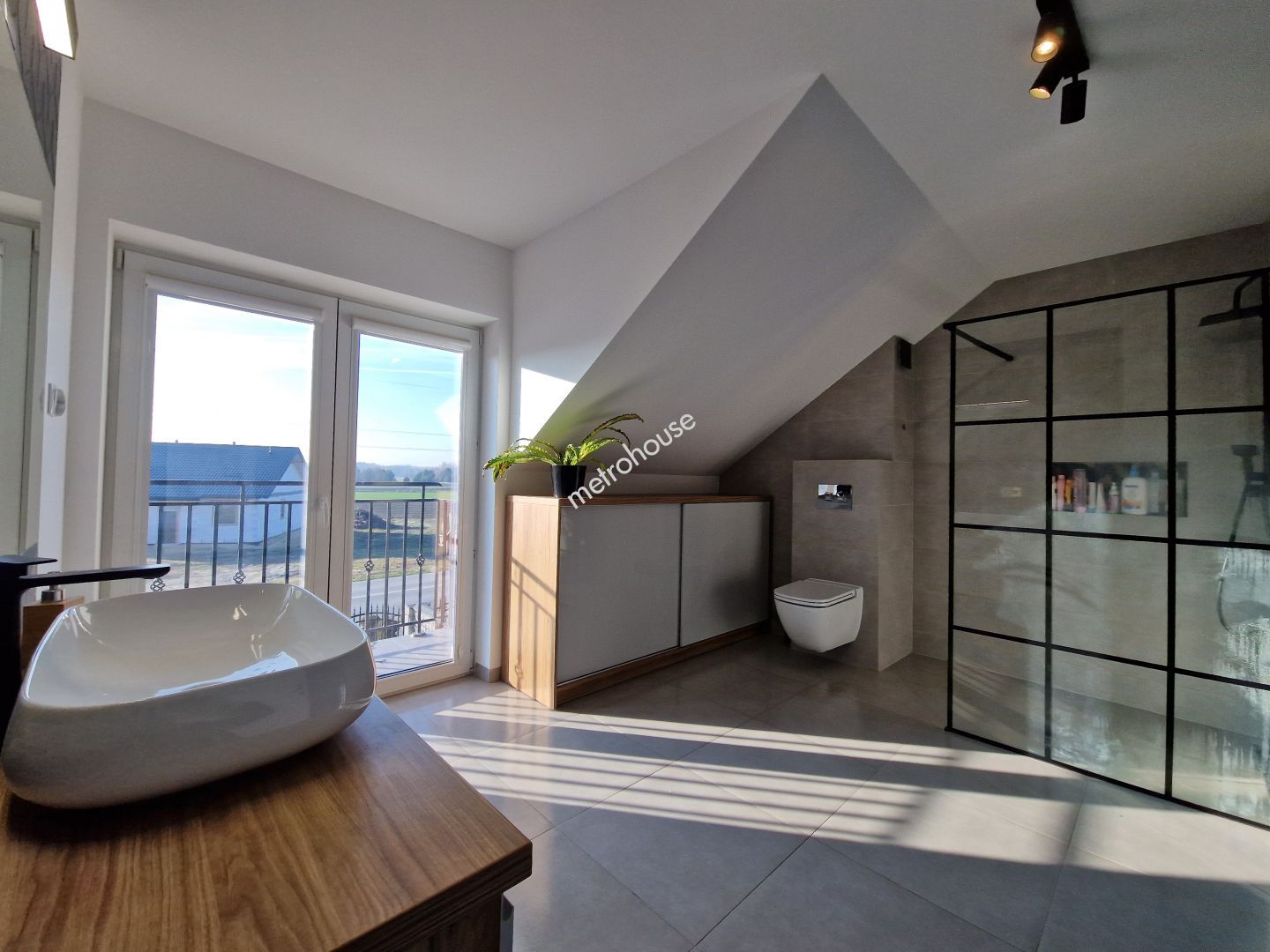 PARTER: -Przestronny salon z aneksem kuchennym, jadalnią i wyjściem na podwórko -Łazienka -Pom. gospodarcze -Hall -Wiatrołap -Garaż w bryle budynku