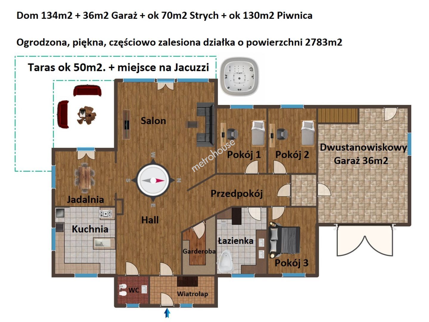 Przestronny i zadbany dom o powierzchni użytkowej 134 m² został zaprojektowany z myślą o wygodzie całej rodziny.
