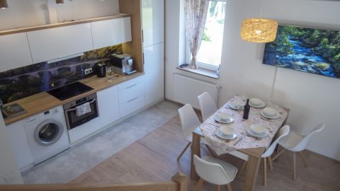 Na sprzedaż przepiękny domek położony w malowniczej Wiśle. Składa się z z pokoju dziennego z wyjściem na taras, kuchni z jadalnią, dwóch łazienek z prysznicem oraz dwóch sypiali.