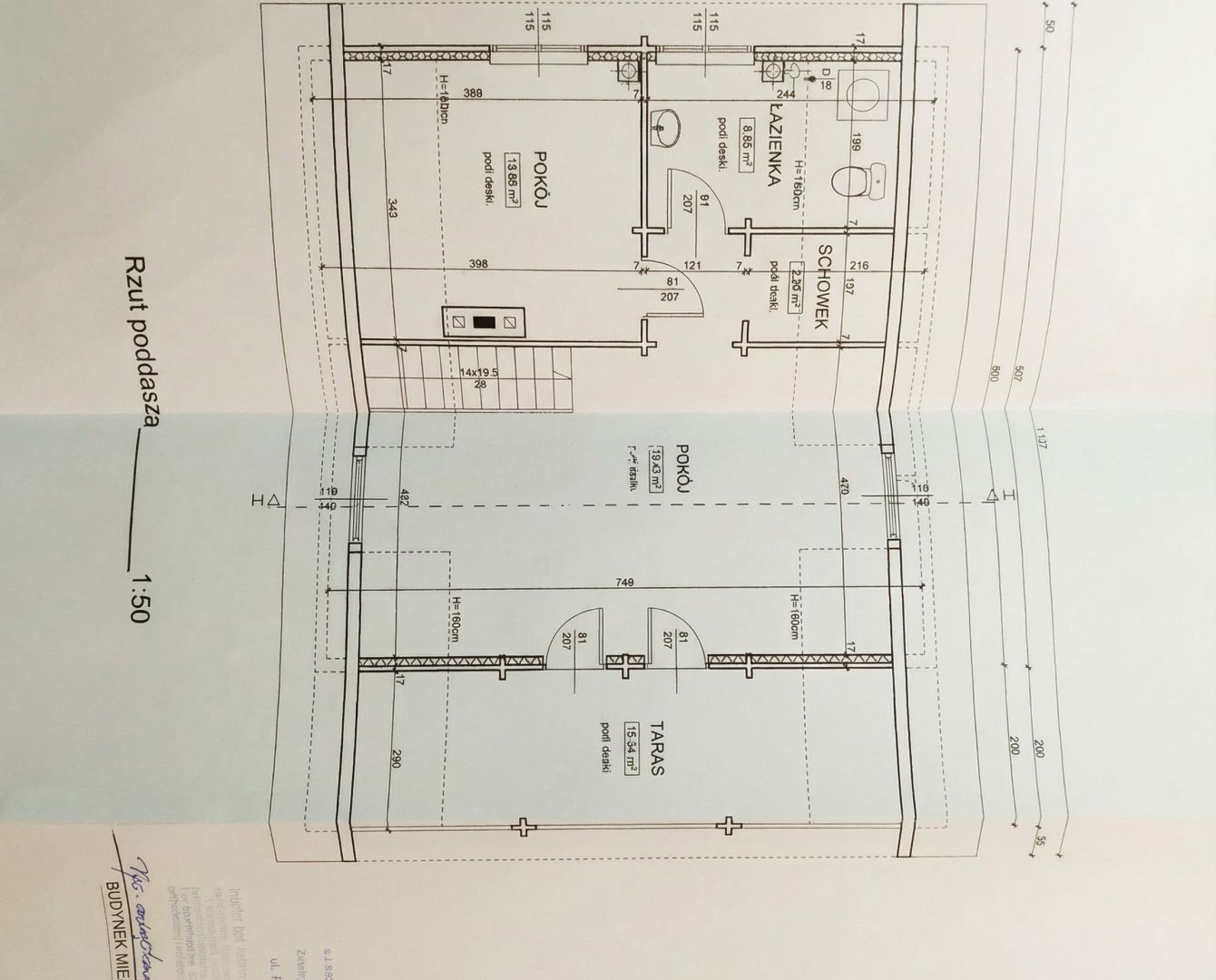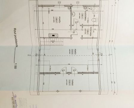 GÓRA (56,89 m2): duży pokój rekreacyjny, z którego można zrobić dwa pokoje, łazienka, schowek, pokój.