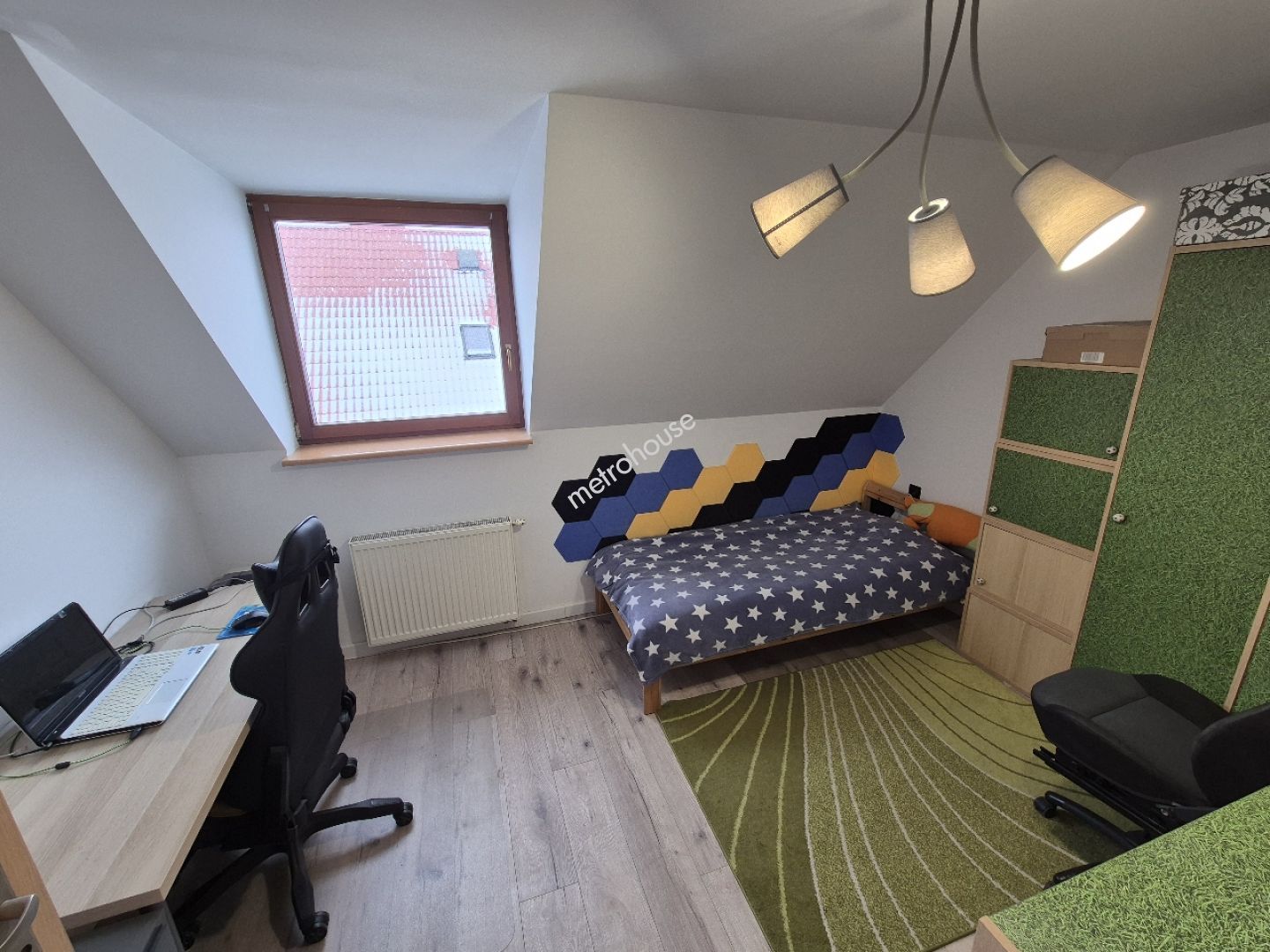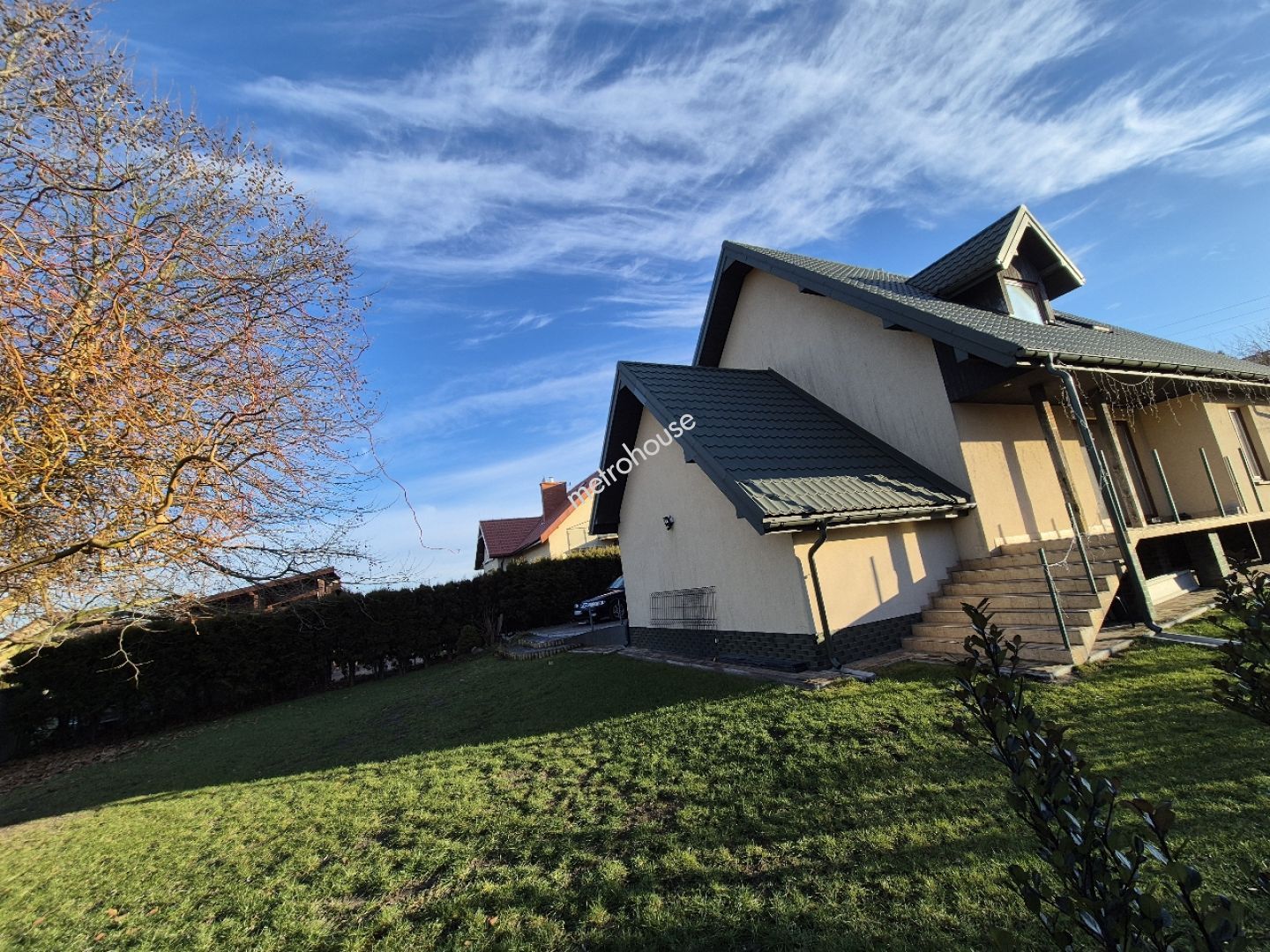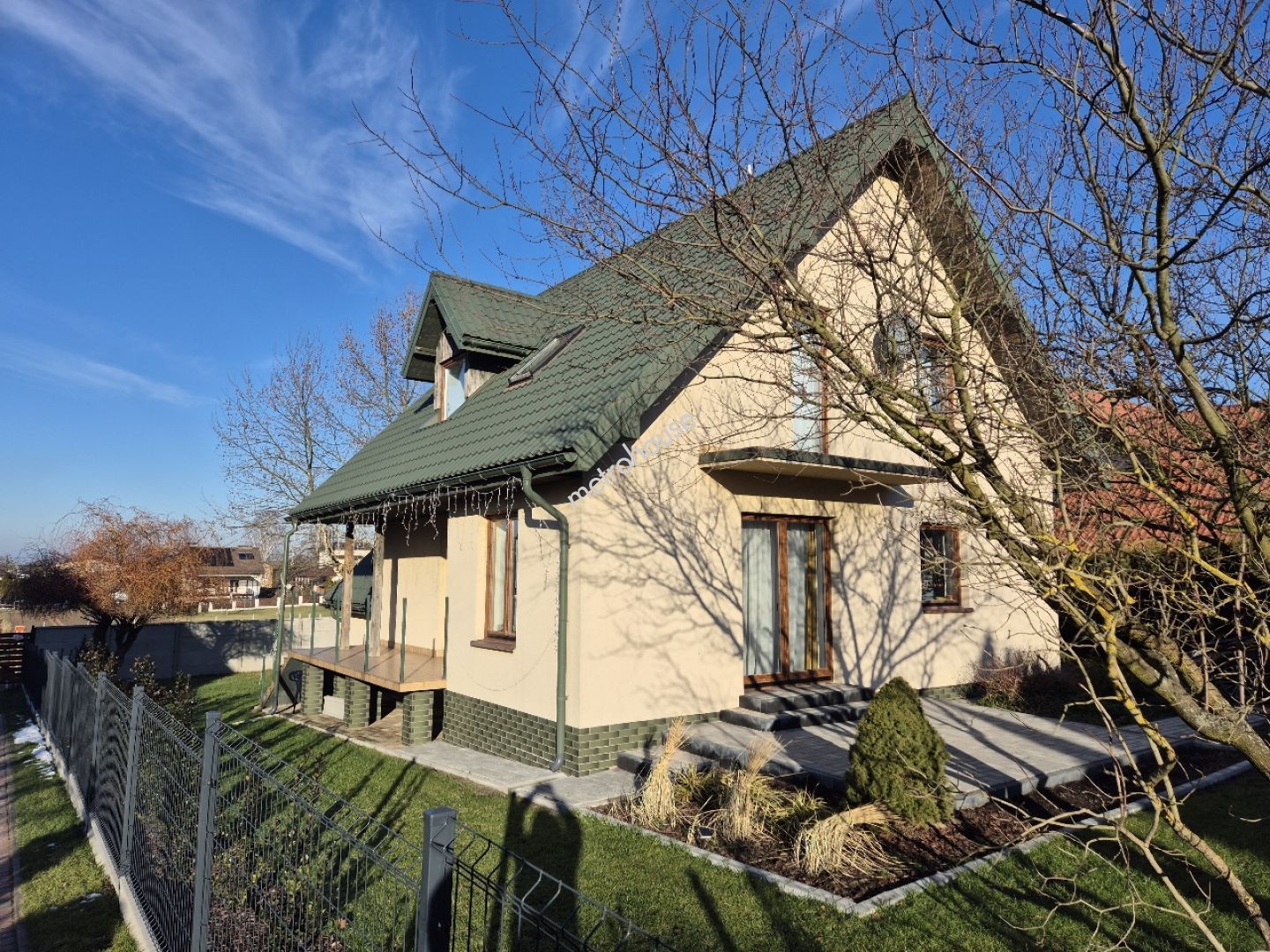 Dom jest w świetnym stanie technicznym, wykończony, umeblowany i gotowy do zamieszkania. Znajduje się na działce 720m2 o wymiarach 20x35m z ogródkiem, trawnikiem pojedynczymi nasadzeniami. Działka ogrodzona siatką. Podjazd z kostki brukowej. W otoczeniu zabudowa...