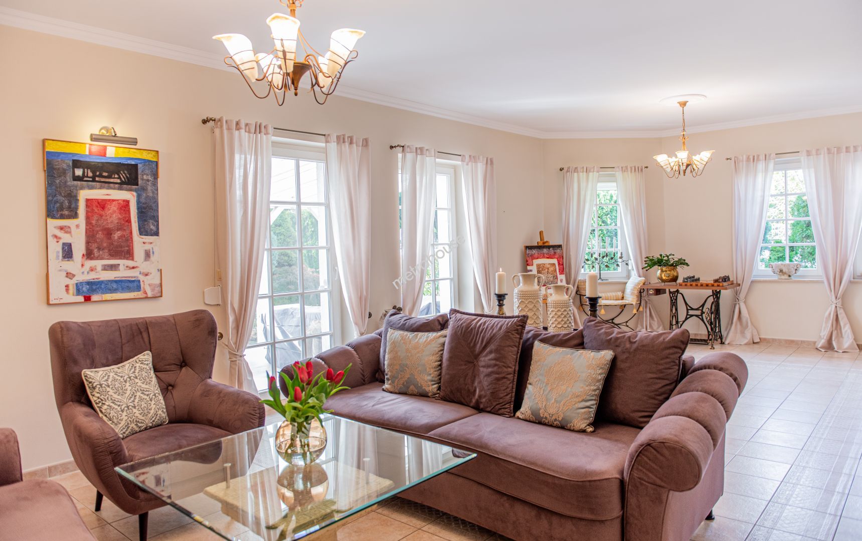Ten przestronny dom został wykończony w stylu śródziemnomorskim i zachwyca ponadczasowym stylem oraz dbałością o detale....