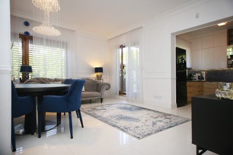 Salon z wyjściem na taras, kompletnie wyposażona kuchnia i wygodne hall to elementy części dziennej domu....