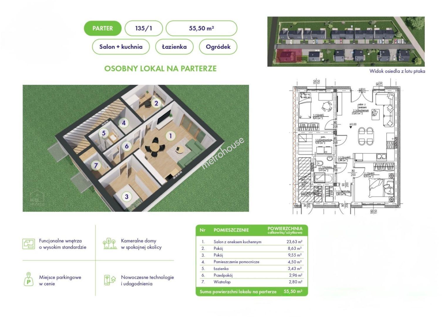 - powierzchnia użytkowa 55,5 m²
