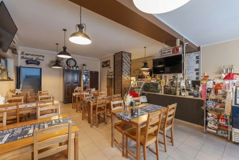 Do nieruchomości przynależy lokal usługowy o powierzchni 112 m², który obecnie działa jako kawiarnia, jednak z...