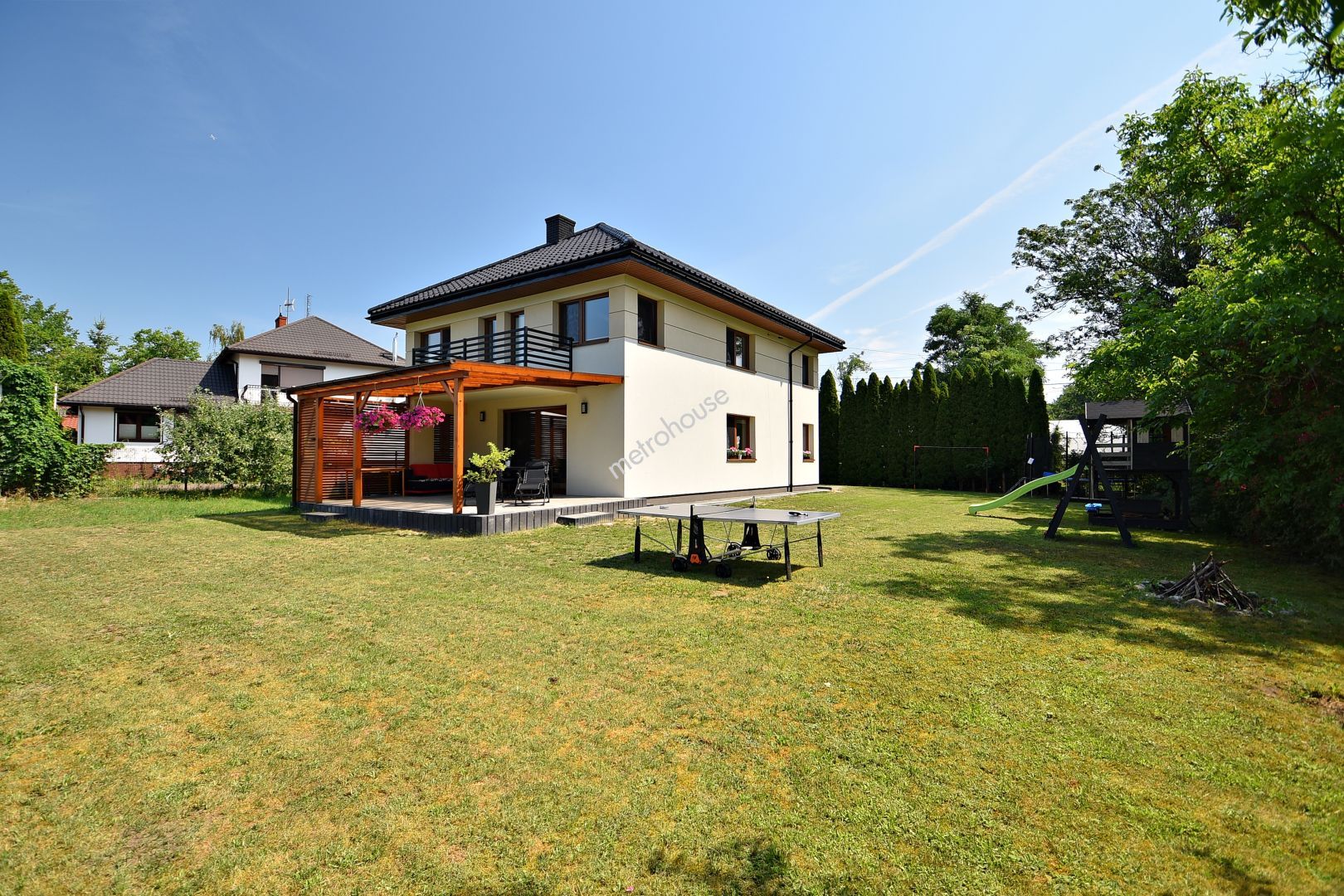 NIERUCHOMOŚĆ Na sprzedaż oferujemy przestronny, wolnostojący dom w północnej części Milanówka, blisko miasta. Ten uroczy budynek oferuje 5 sypialni, salon z aneksem, garaż w bryle budynku oraz przepiękny, duży ogród. Wnętrze domu zdobi kominek norweski z systemem rozprowadzenia ciepła, zapewniając przytulną atmosferę w salonie, główny system ogrzewania to gazowy piec...