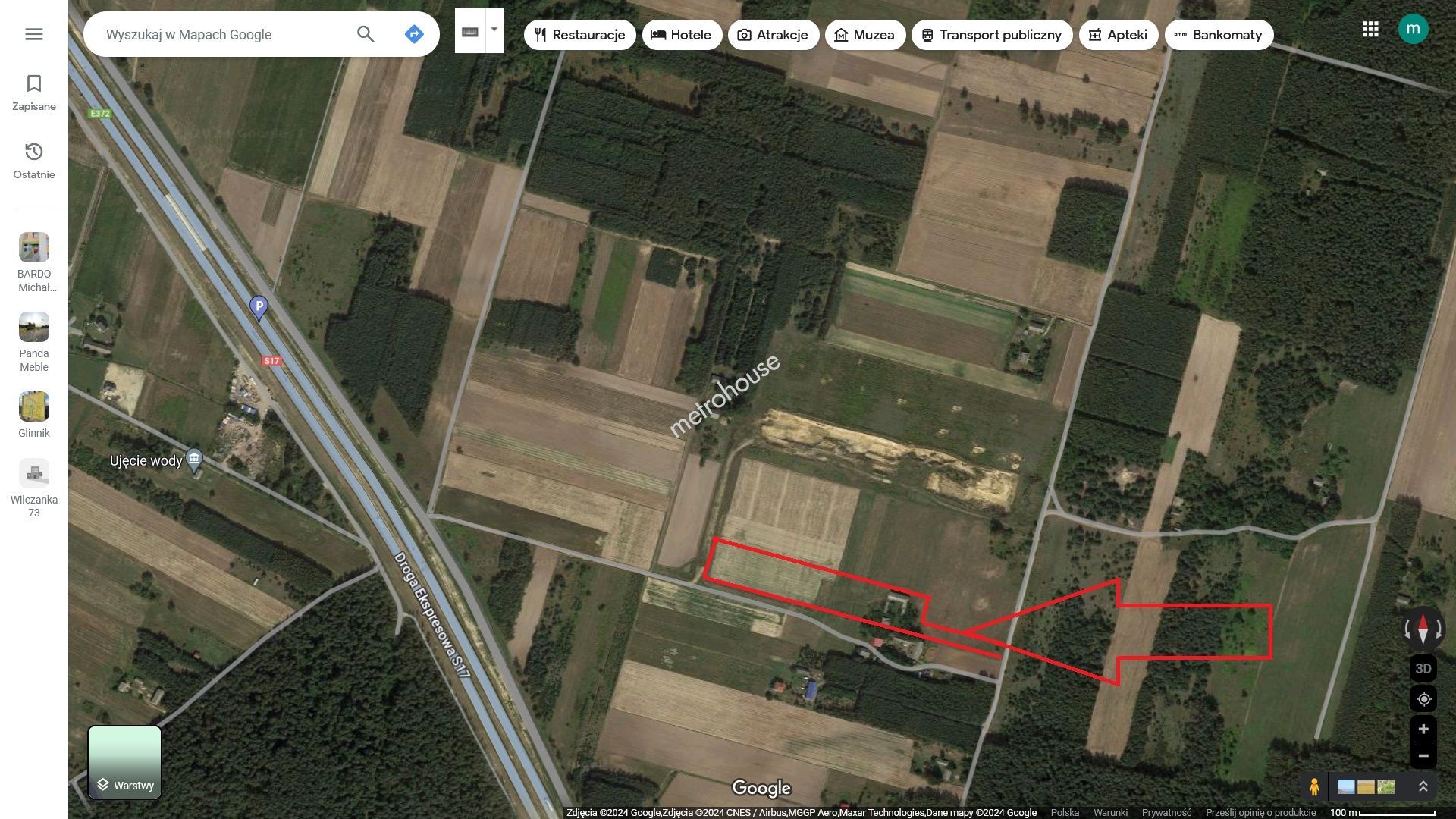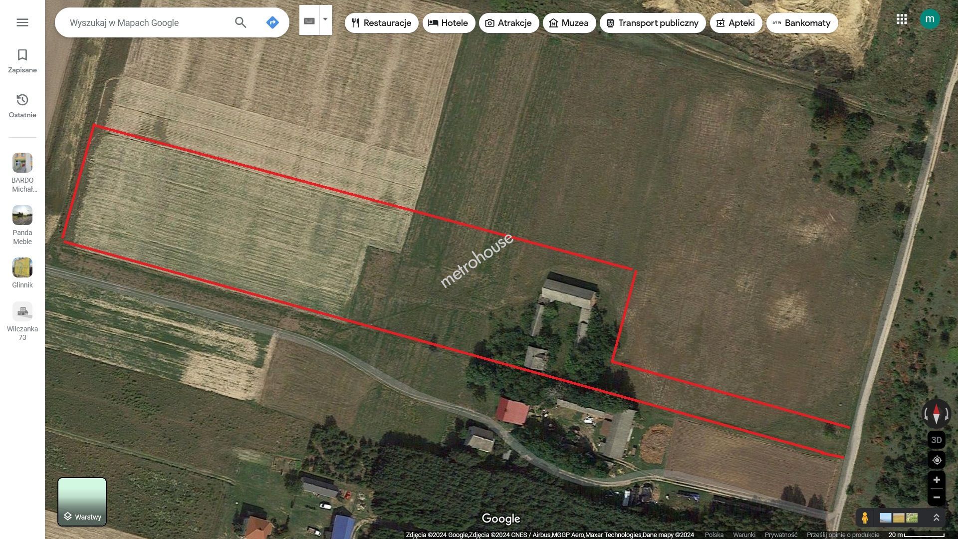 Dom usytuowany w cichej i spokojnej okolicy, w sąsiedztwie pól i lasów oraz terenów niezabudowanych. Wybudowany w latach 70. na działce o powierzchni 1,73ha. Zaletą nieruchomości jest jej lokalizacja - z dala od miasta lecz z doskonałym połączeniem komunikacyjnym.