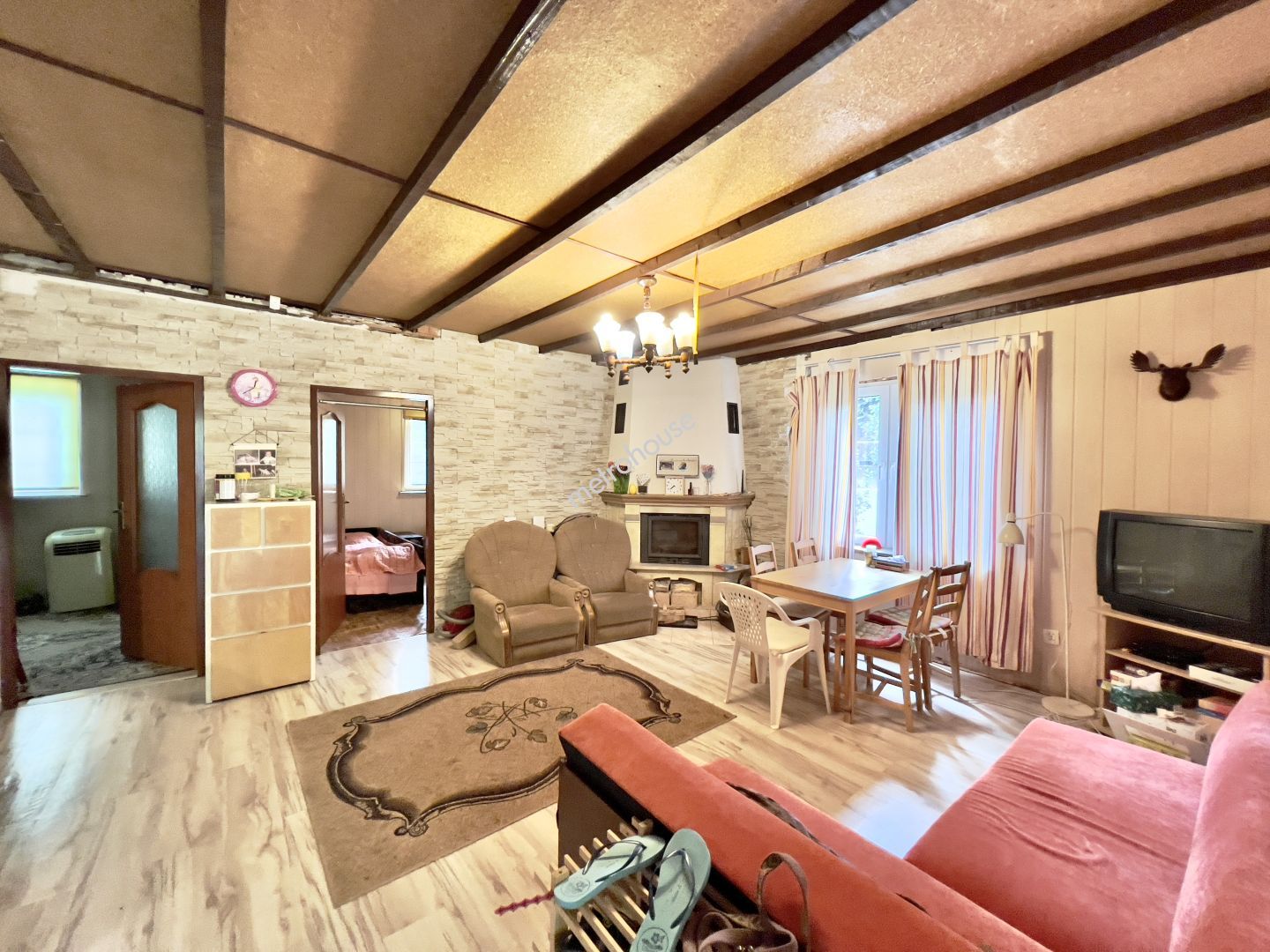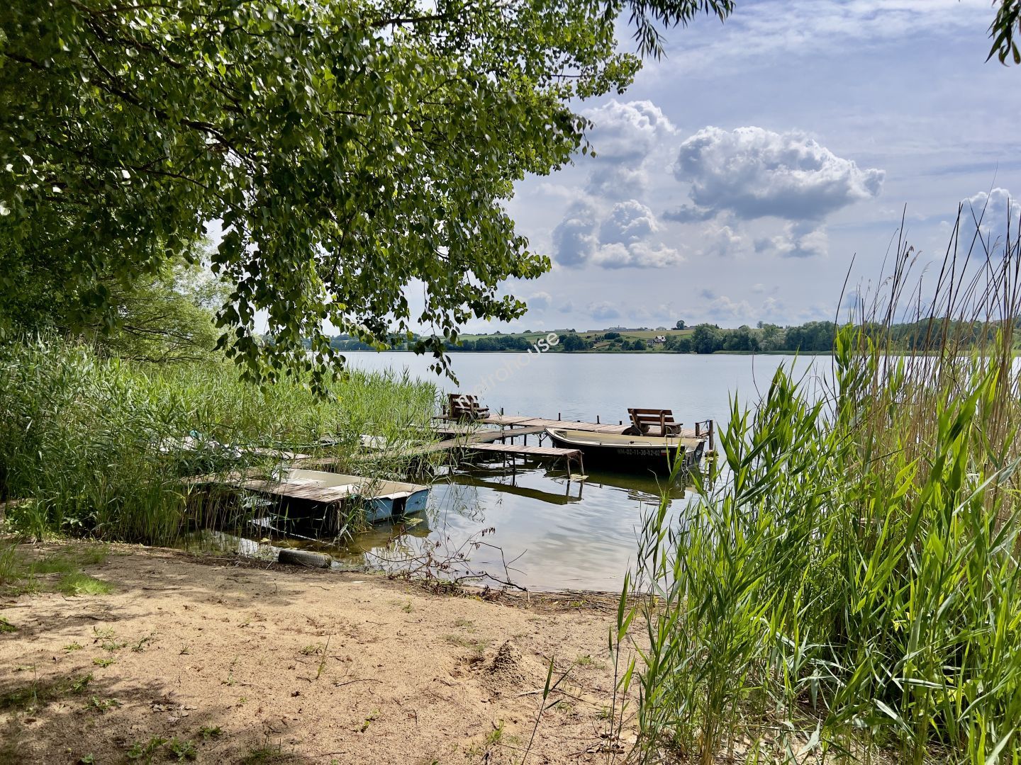 Dom na działce rekreacyjnej w Skarlinie zlokalizowany jest w pobliżu jeziora. Niezaprzeczalnym atutem nieruchomości jest własny pomost z przycumowaną do niego łodzią wiosłową.