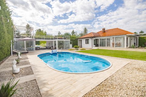 Na sprzedaż zjawiskowa willa pod Radzyminem w stylu hiszpańskim. Już od wejścia widać, ze mamy do czynienia z niebywałą dbałością o szczegóły oraz bardzo konsekwentny i przemyślany projekt domu i ogrodu. Całość w myśl wygody, luksusu i poczucia mieszkania jak w hiszpańskiej rezydencji nad tuz nad morzem Śródziemnym..