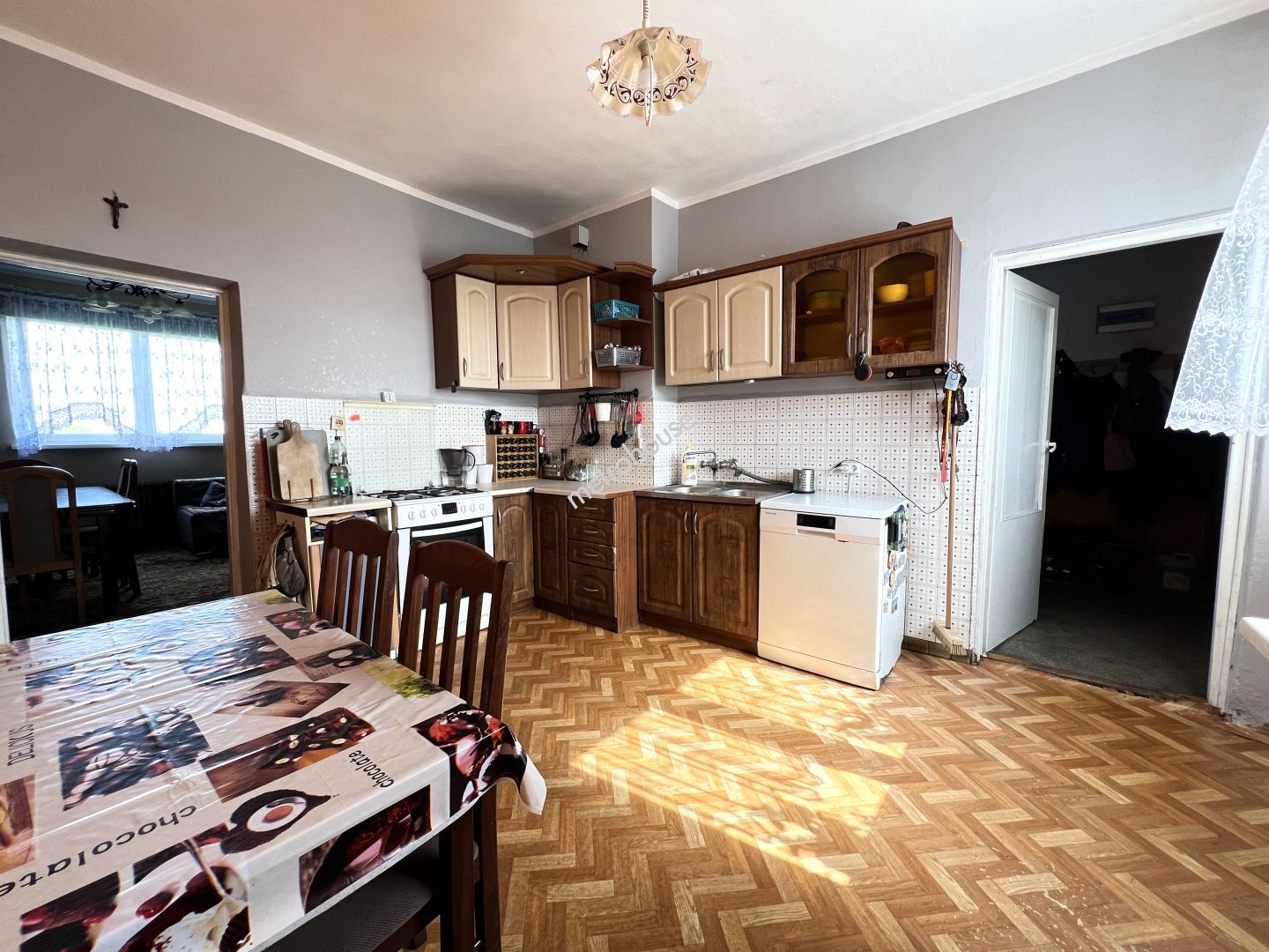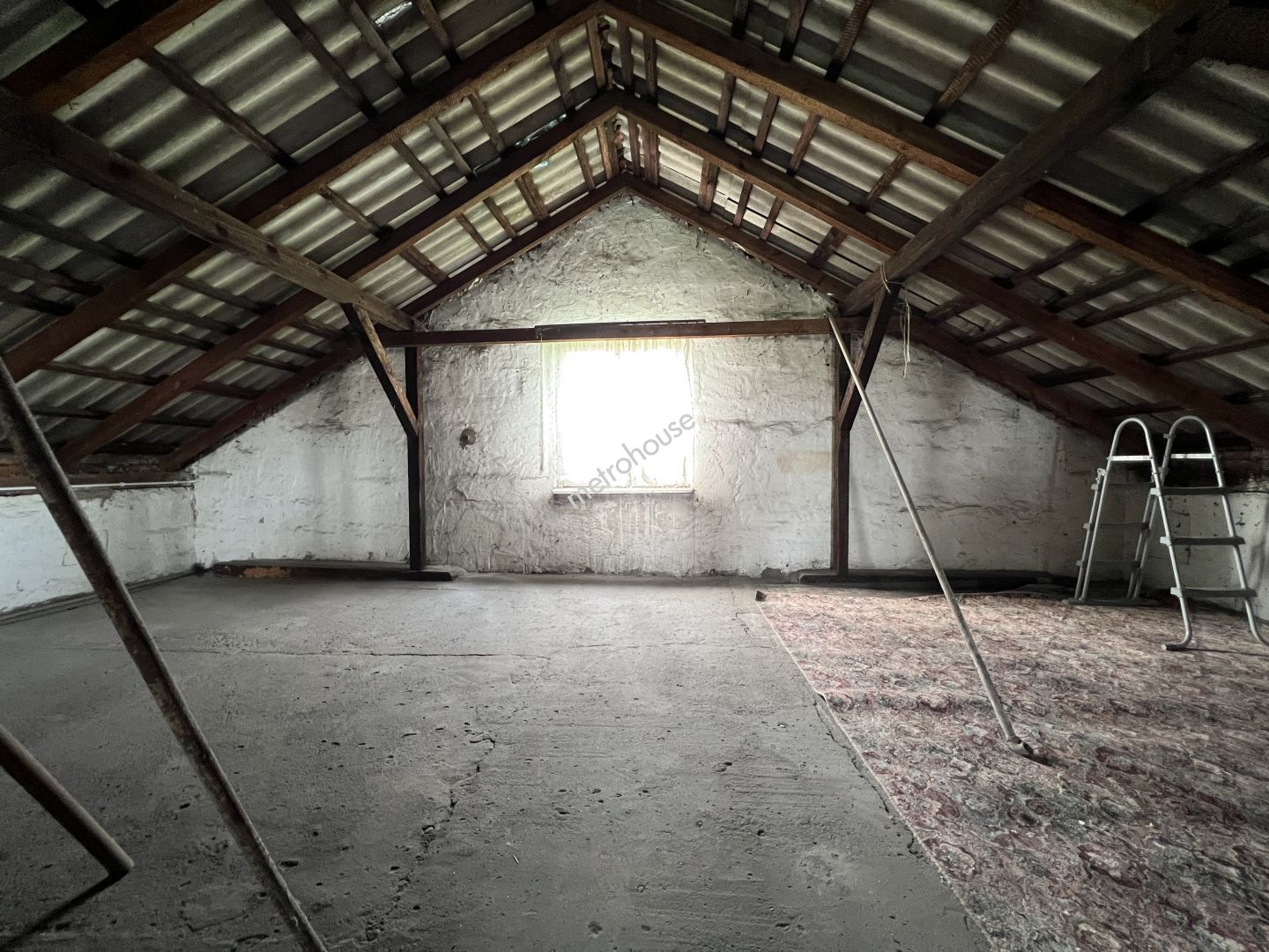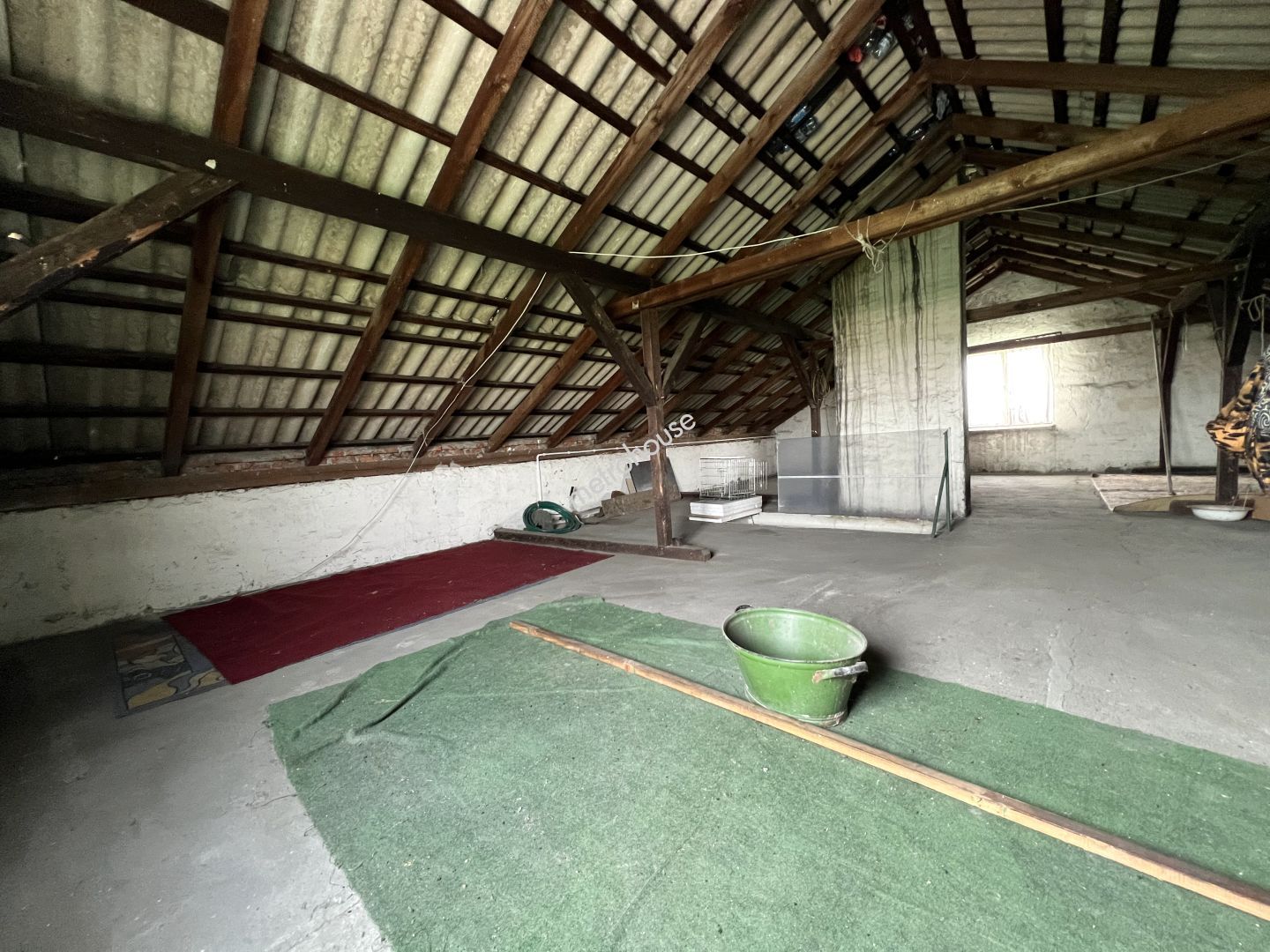 Część mieszkalna przedstawianej nieruchomości, jest w stanie - do zamieszkania z perspektywą remontu, w tym momencie powierzchni mieszkalnej mamy około 95 m2, ale ogromne poddasze, daje duże możliwości adaptacji, dzięki czemu zyskamy kolejne 80 m2. Dom został wybudowany w latach 70, w całości podpiwniczony. Nie ma dostępu do kanalizacji, odprowadzenie do przydomowego szamba....