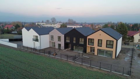 Prezentowany dom o powierzchni 213m2 posadowiony na działce o powierzchni 400m2 jest skrajnym budynkiem należącym do unikatowej architektonicznie inwestycji składającej się z czterech domów - każdy w innym, niepowtarzalnym stylu.