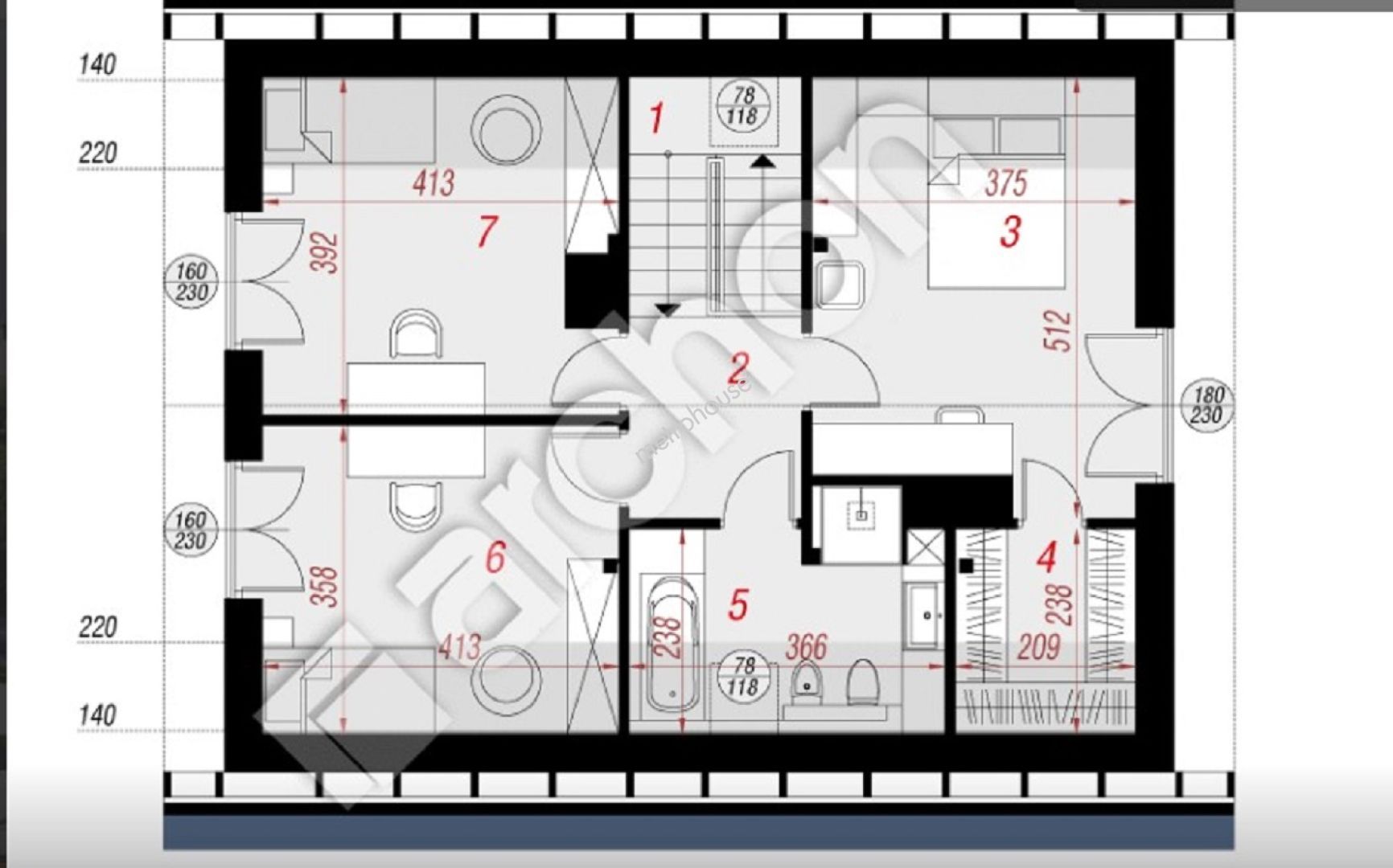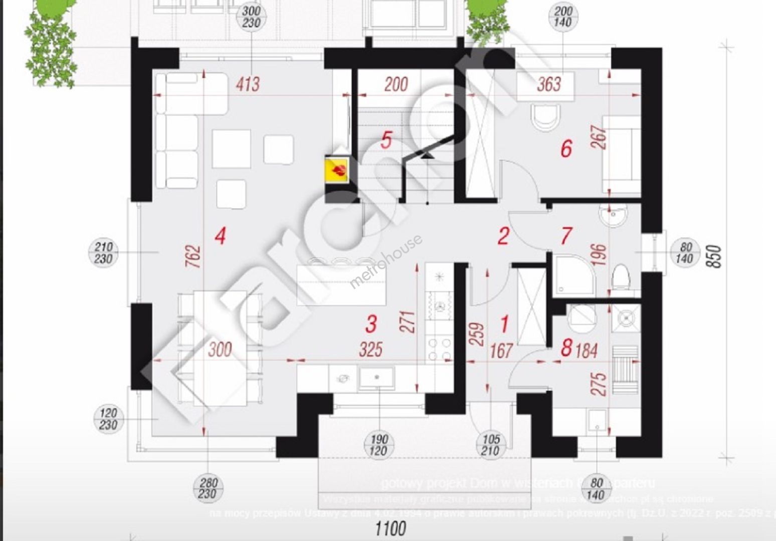 Dom wolnostojący o powierzchni całkowitej 183,83 m2, użytkowej 124,66 m2 położony na działce o powierzchni 300 m2.