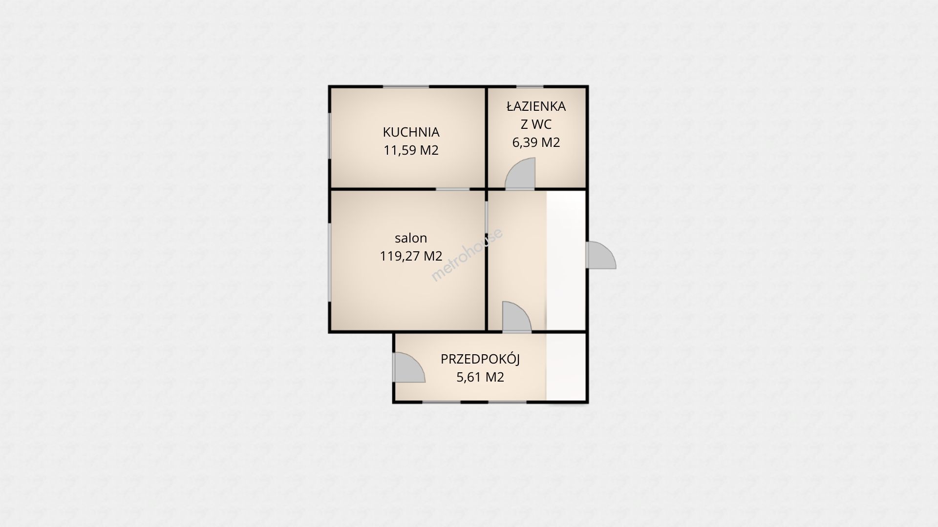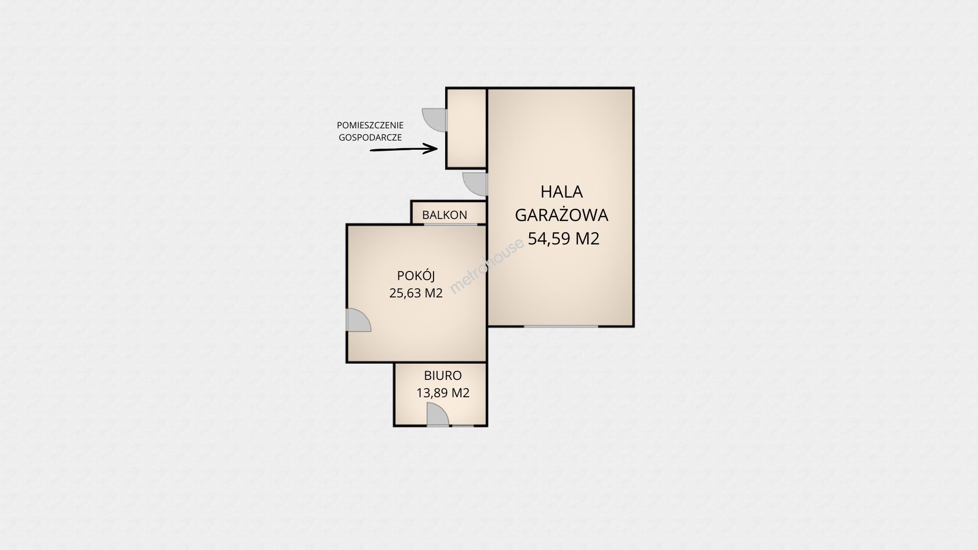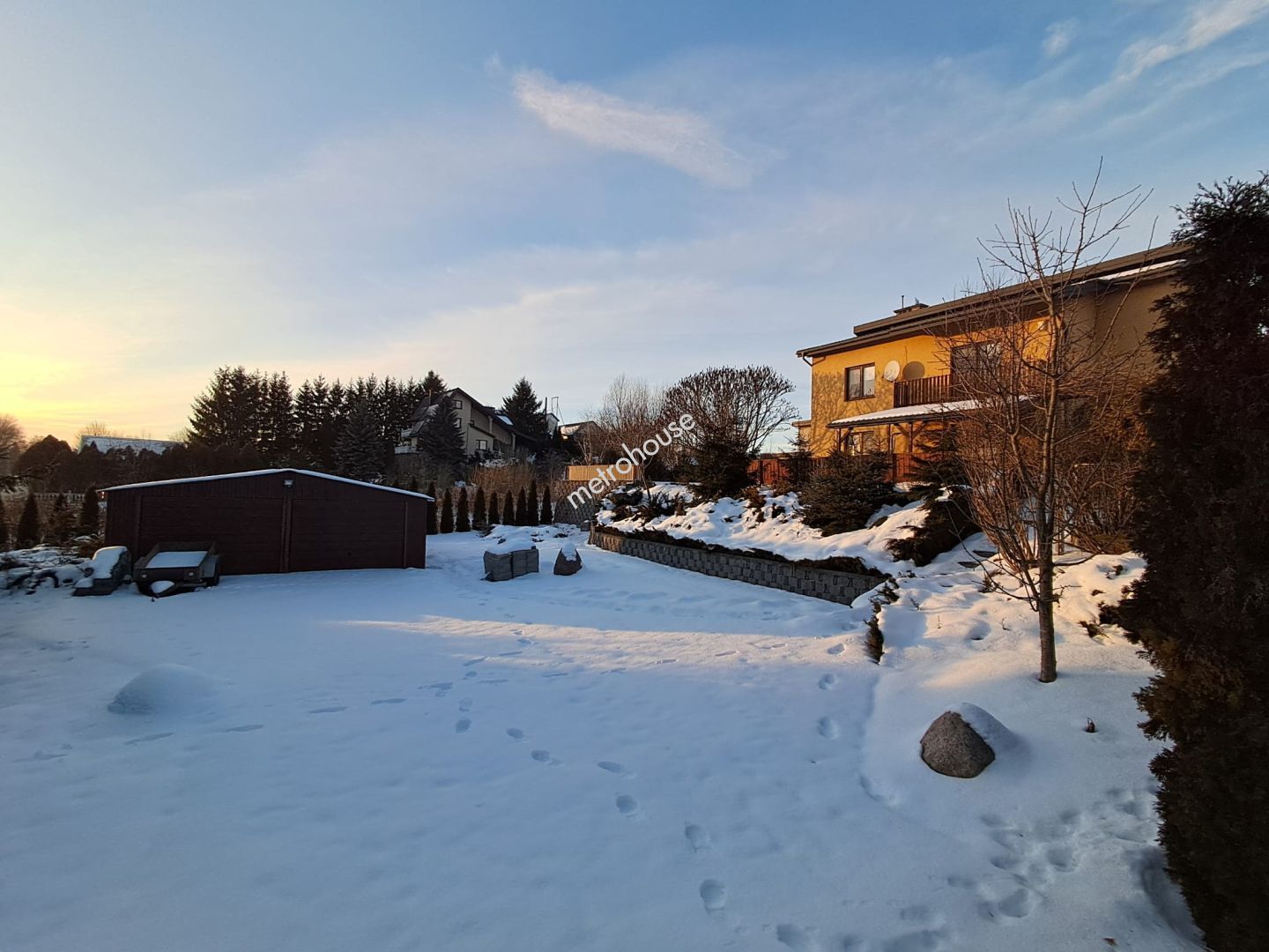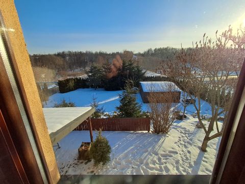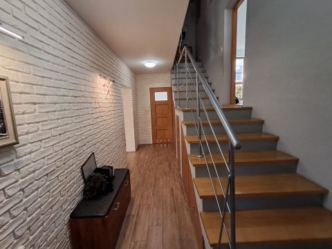 Dom o łącznej powierzchni 137,64 m² obejmuje część mieszkalną oraz biuro (gabinet). Do biura dobudowany jest garaż o powierzchni 54,59 m².