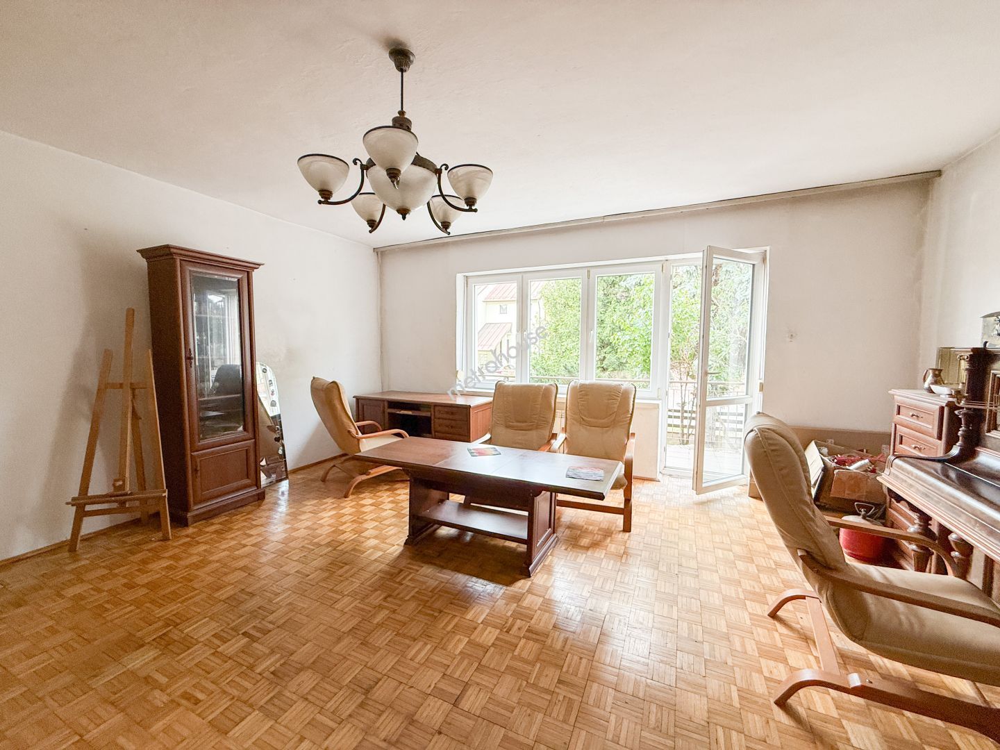 Dom ma łącznie ponad 300mkw, i składa się z 7 pokoi, dwóch łazienek, kuchni z jadalnią, strychu oraz wysokiej piwnicy i garażu.