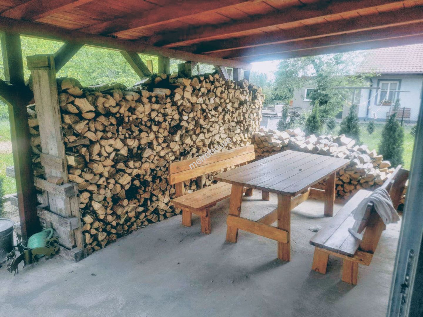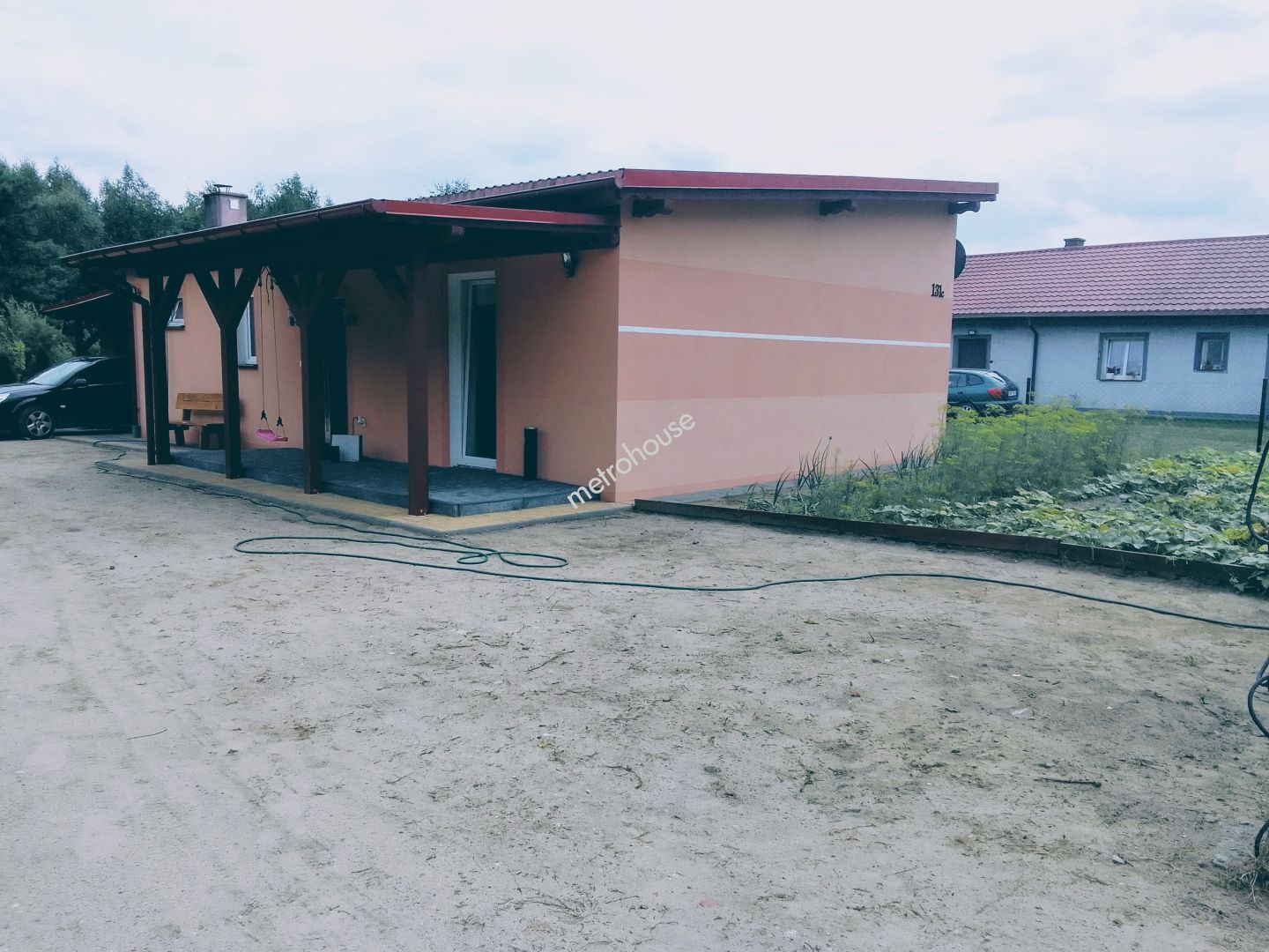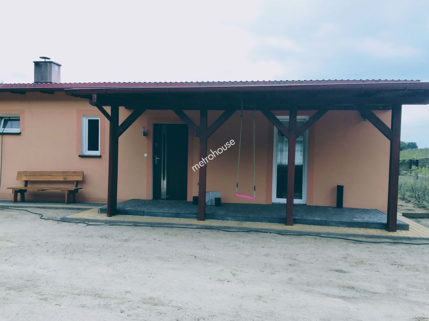 Nieruchomość składa się z przestronnego salonu, sypialni, kuchni z jadalnią, łazienki, przedpokoju oraz kotłowni z osobnym wejściem. Do domu przynależy również wiata parkingowa z drewutnią. Zadaszony taras przed wejściem daje dodatkową przestrzeń do wypoczynku na świeżym powietrzu.