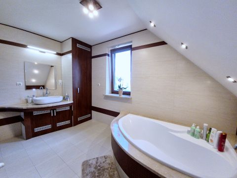 Dom jednorodzinny z garażem. Położony na działce o powierzchni 1200 m² dom o powierzchni użytkowej 115,4 m² (całkowitej 124,6 m²) został zbudowany w 2004 roku i systematycznie modernizowany, by sprostać najwyższym standardom komfortu i bezpieczeństwa. Dom otacza zadbany ogród z...