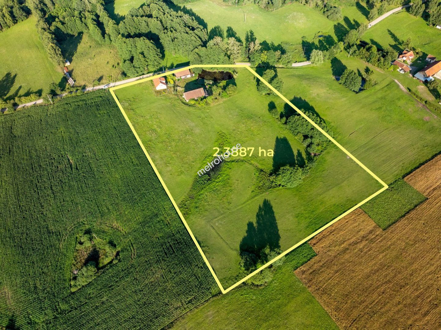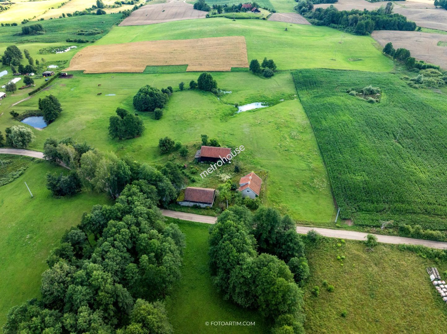 Działka o powierzchni 2 ha 3887 m2. położona na niewielkim wzniesieniu, skąd można podziwiać okoliczną panoramę lasów i łąk.