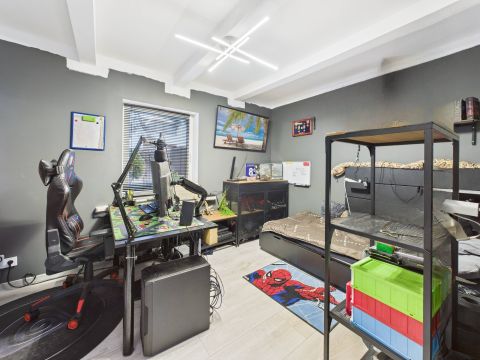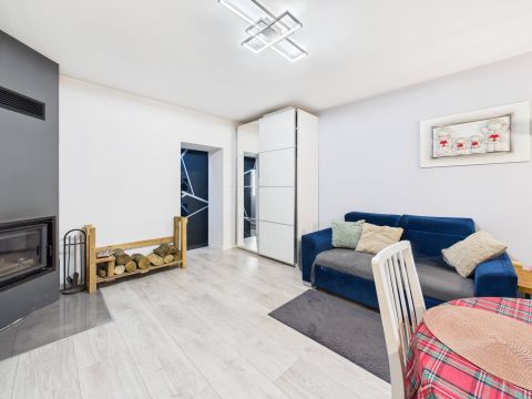 Dom wyposażony jest w efektywne ogrzewanie kominkowe, co zapewnia przytulną atmosferę i niskie koszty eksploatacji....