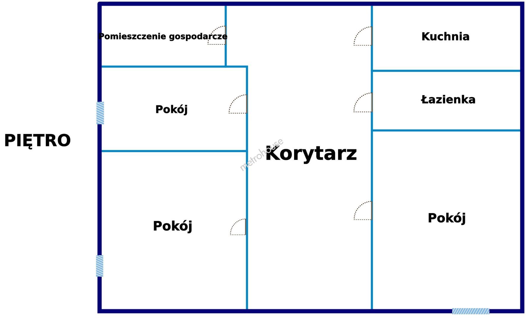 Poziom parteru: kuchnia, łazienka, kotłownia, 2 pokoje, korytarz, przedsionek.