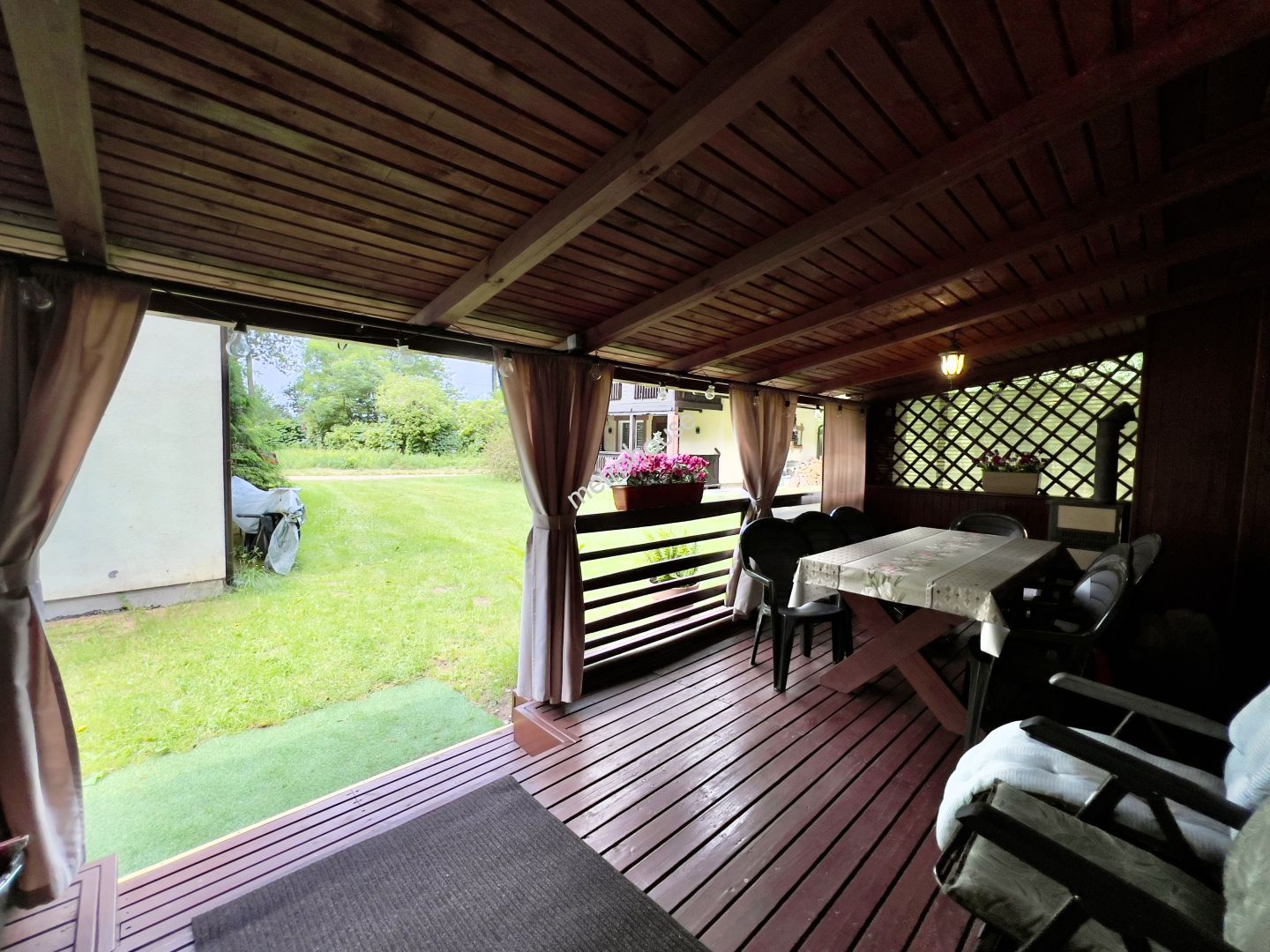 Duży, zadaszony taras idealny na letnie wieczory i relaks na świeżym powietrzu