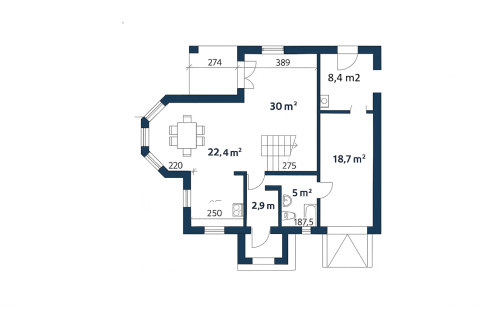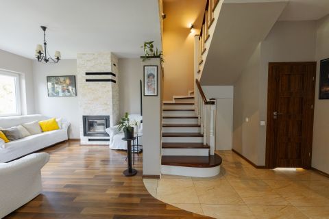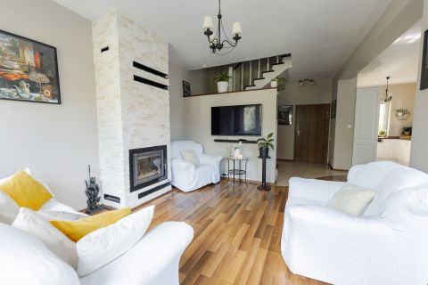 Układ pomieszczeń: Przestronny salon z kominkiem i jadalnia-centrum życia...