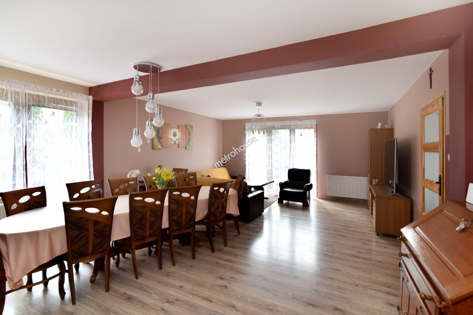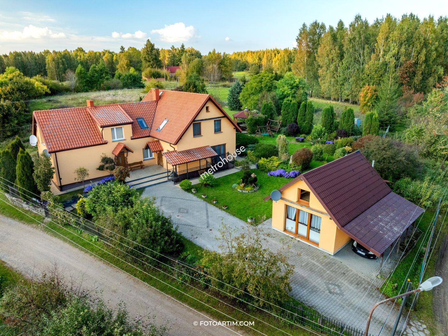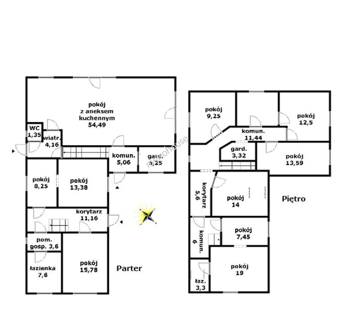 Przestronny dom z domkiem gościnnym w położony pięknej, cichej okolicy W skład domu wchodzi duży salon z aneksem kuchennym i dwoma wyjściami do ogrodu, 9 pokoi, 3 łazienki, WC i 2 garderoby. Budynek w połowie podpiwniczony. Duże, ogrzewane pomieszczenie w piwnicy może służyć jako pokój rekreacyjny bądź siłownia. Ogrzewanie domu piecem gazowym oraz na ekogroszek. Przy...