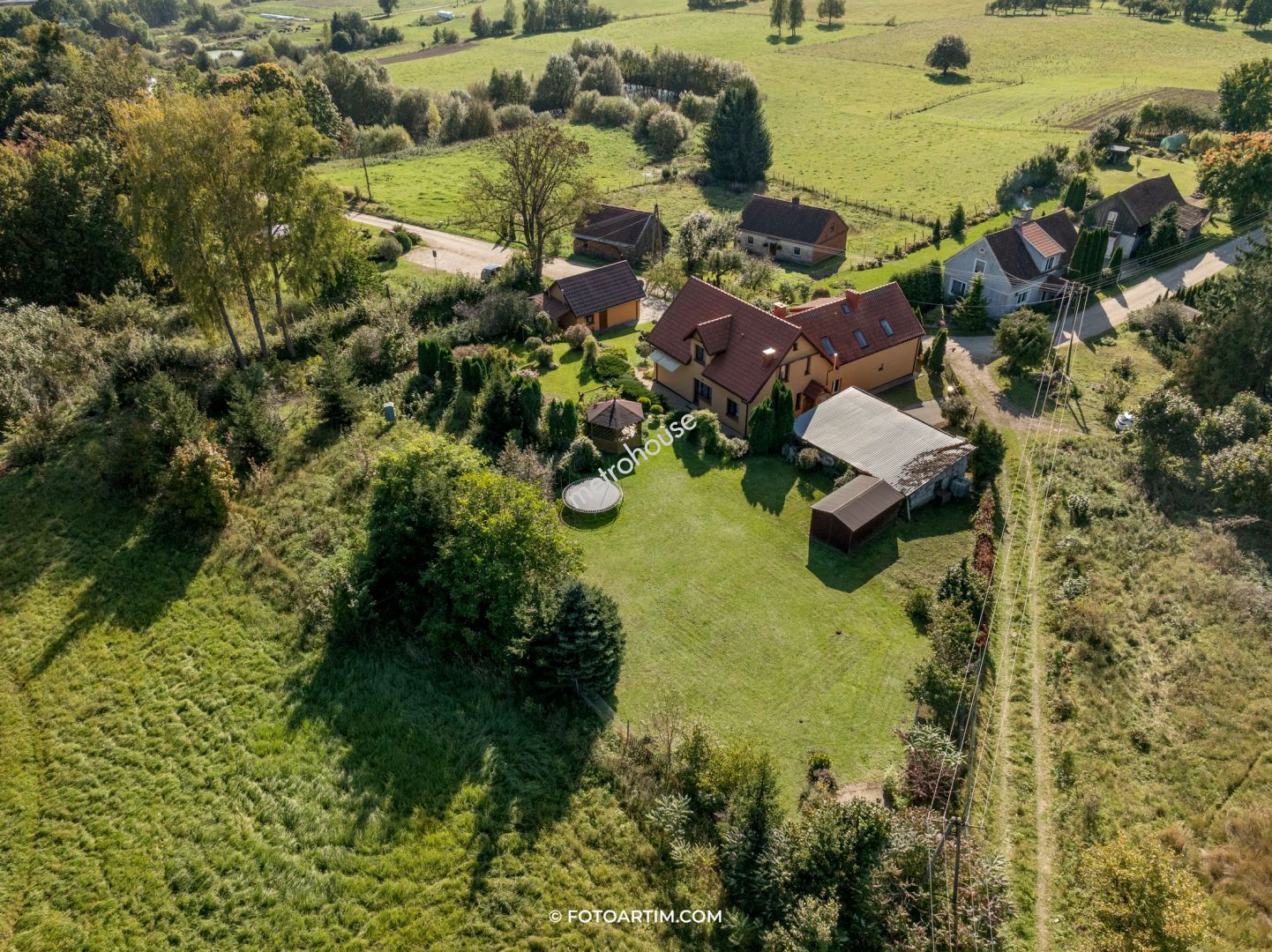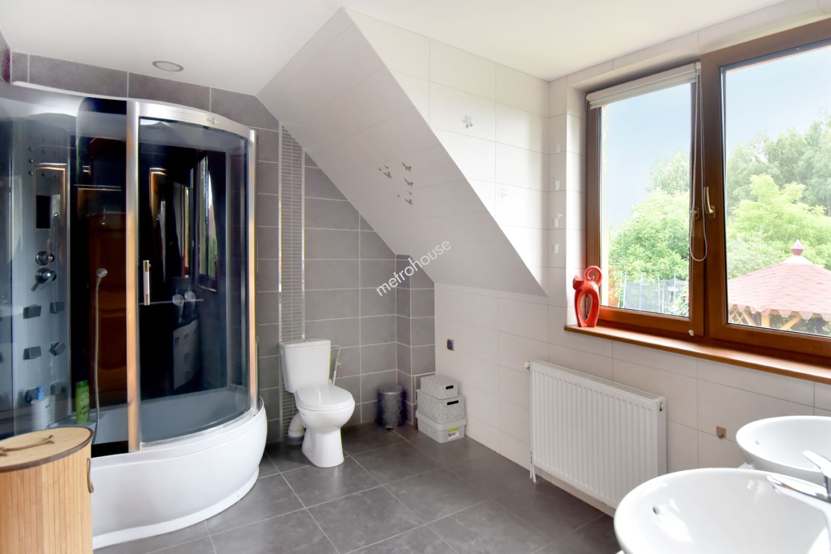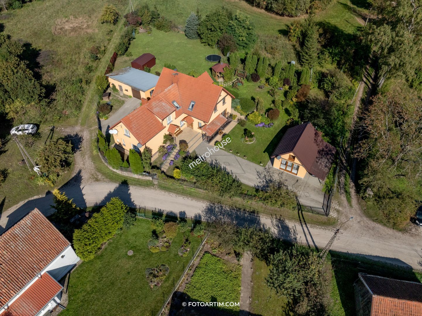 Przestronny dom z domkiem gościnnym w położony pięknej, cichej okolicy W skład domu wchodzi duży salon z aneksem kuchennym i dwoma wyjściami do ogrodu, 9 pokoi, 3 łazienki, WC i 2 garderoby. Budynek w połowie podpiwniczony. Duże, ogrzewane pomieszczenie w piwnicy może służyć jako pokój rekreacyjny bądź siłownia. Ogrzewanie domu piecem gazowym oraz na ekogroszek. Przy...