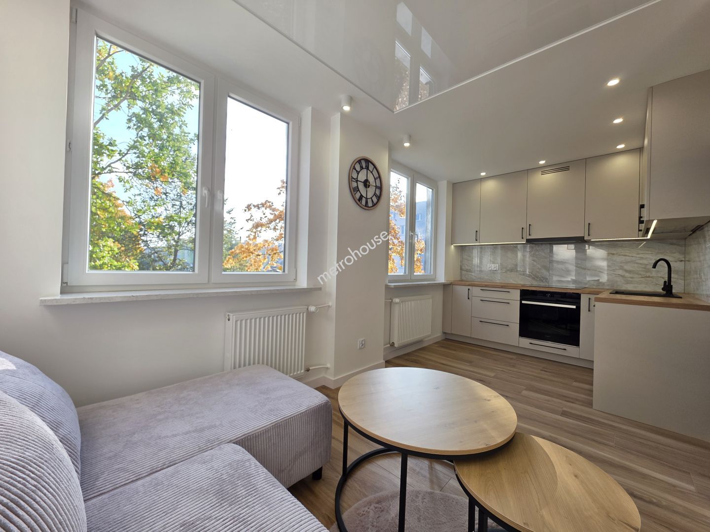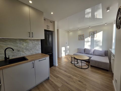 -Jasny salon połączony z aneksem kuchennym