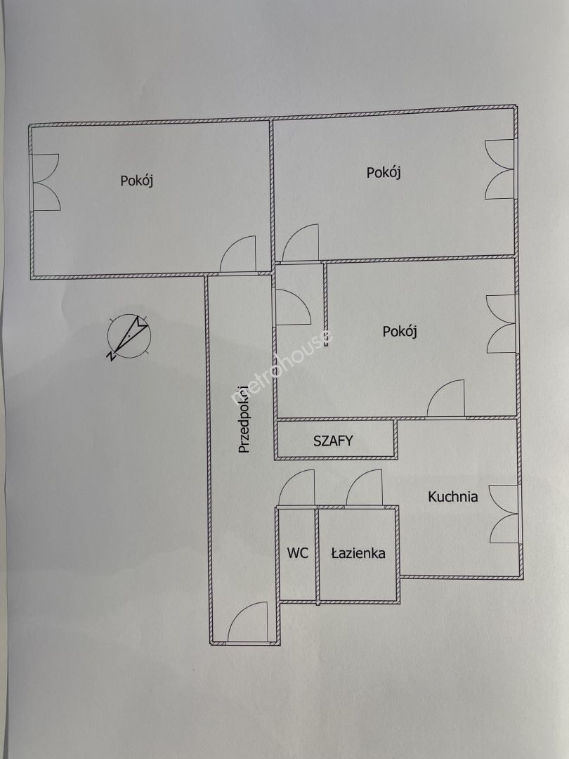 3 przestronne pokoje z oddzielną kuchnią z oknem.