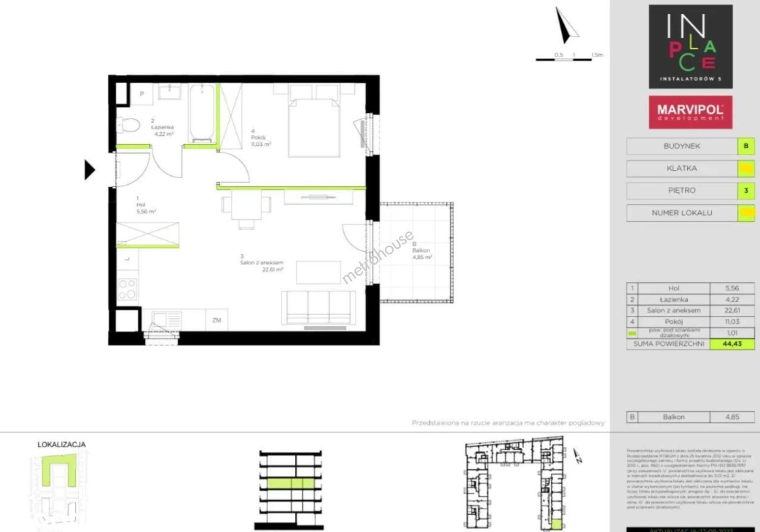 Powierzchnia: 44,43 m²