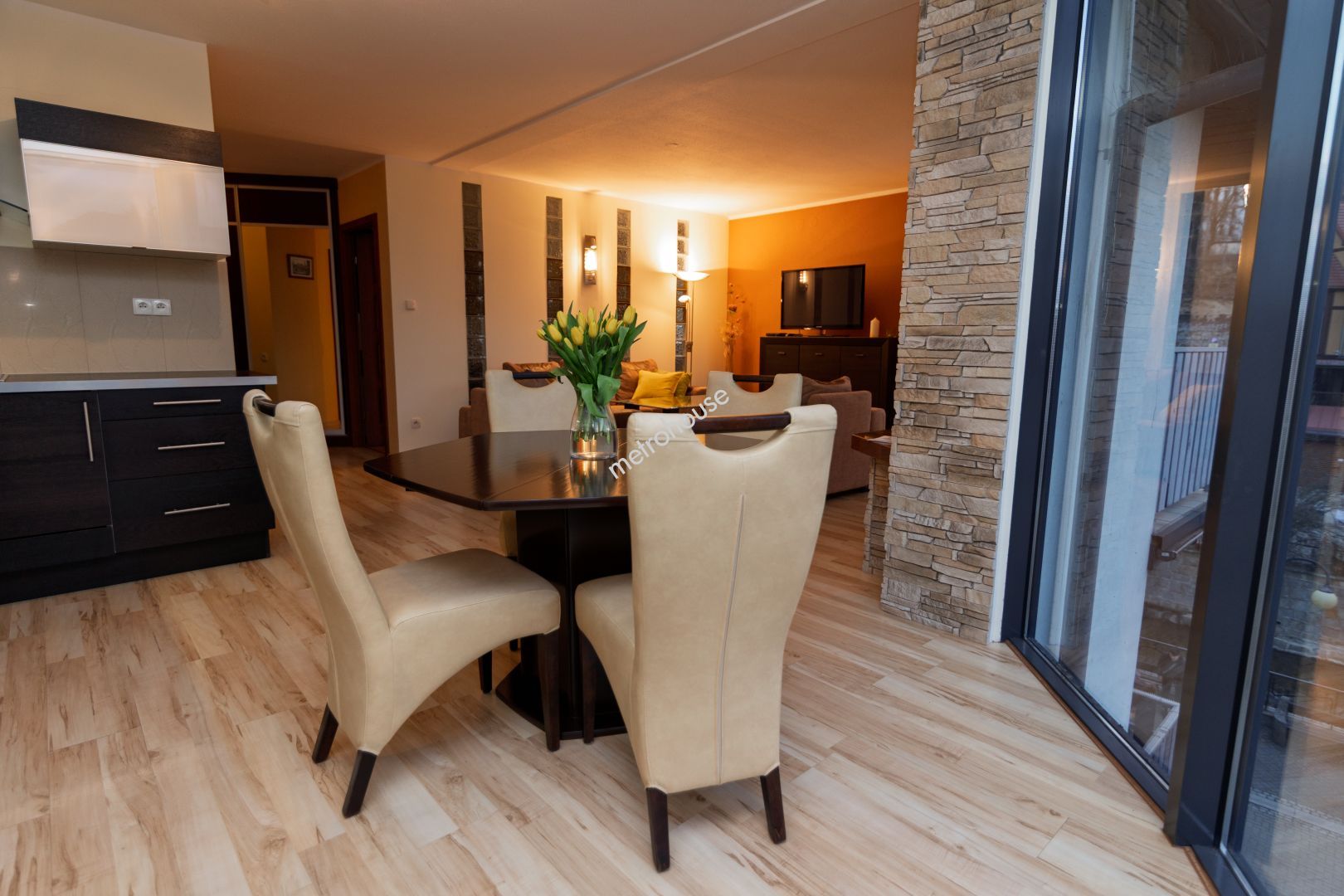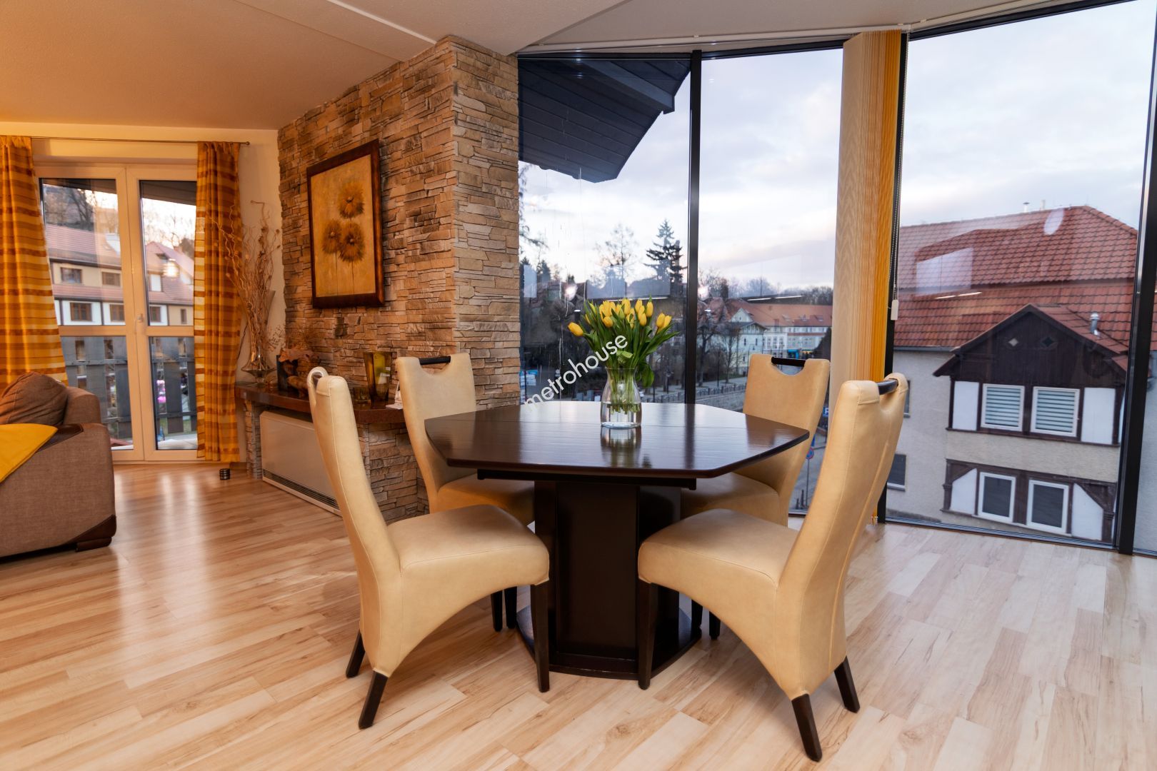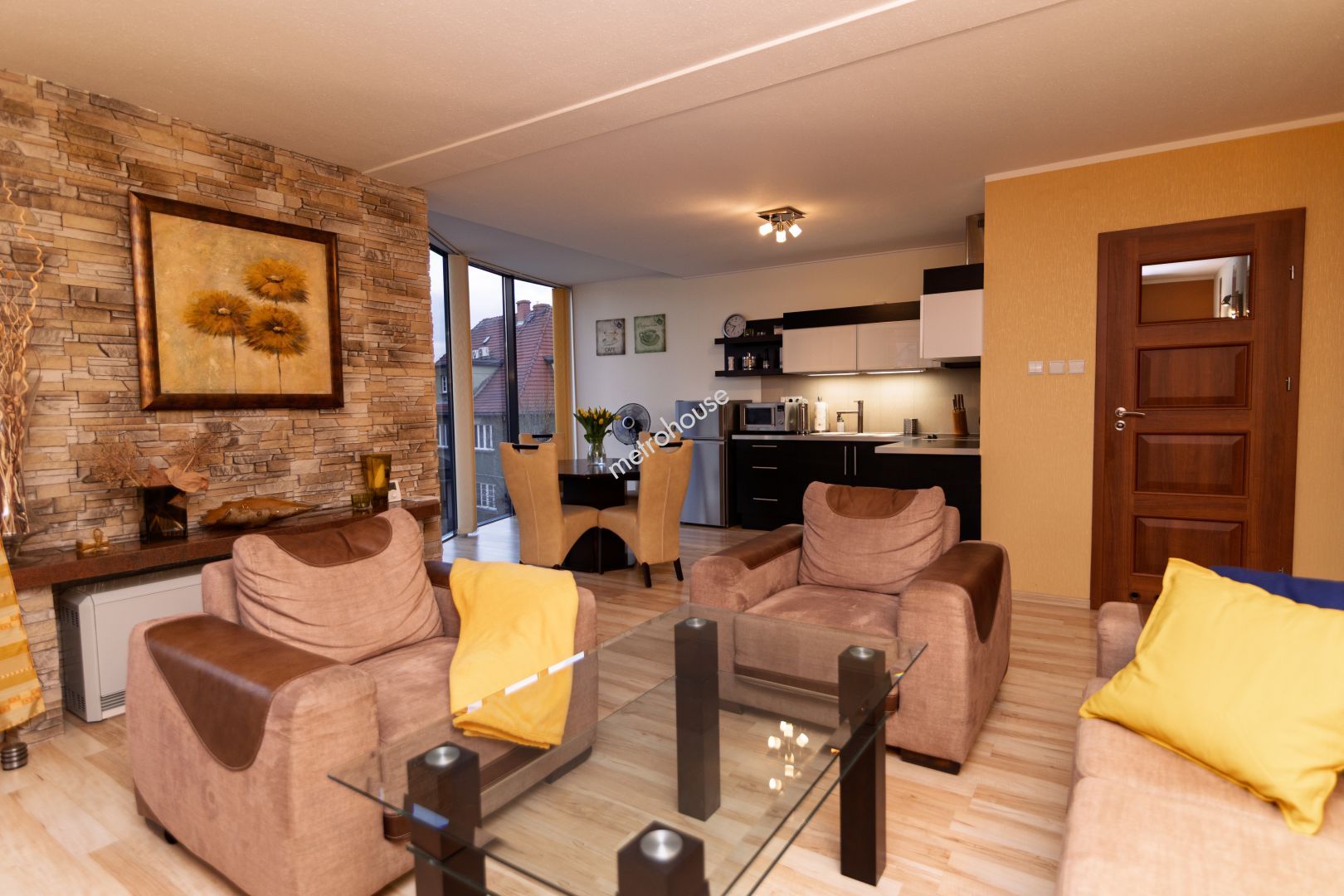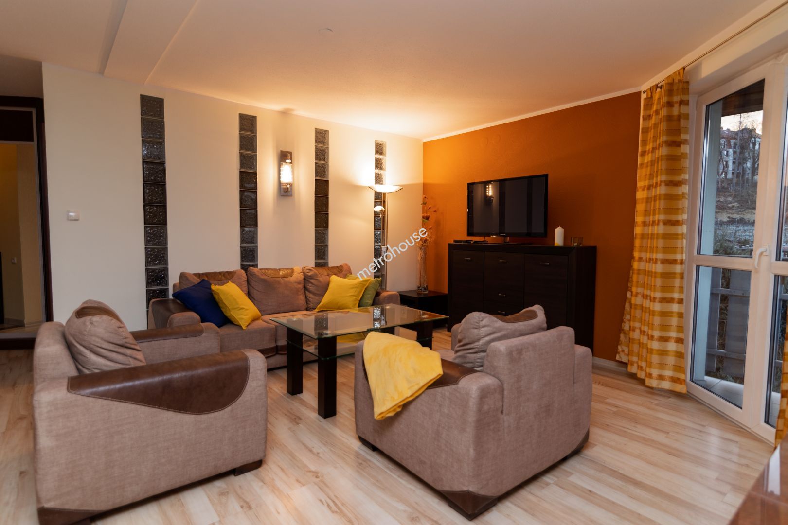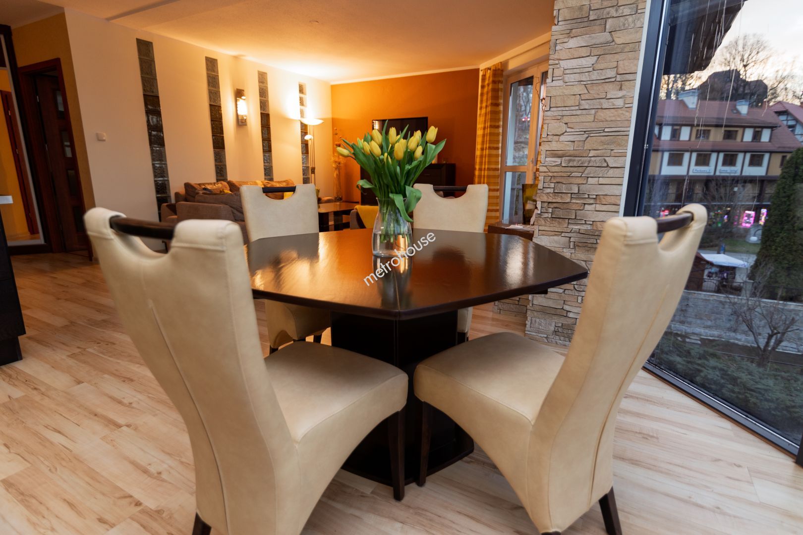Przeszklony salon dodaje wnętrzu nowoczesnego charakteru i doskonale...