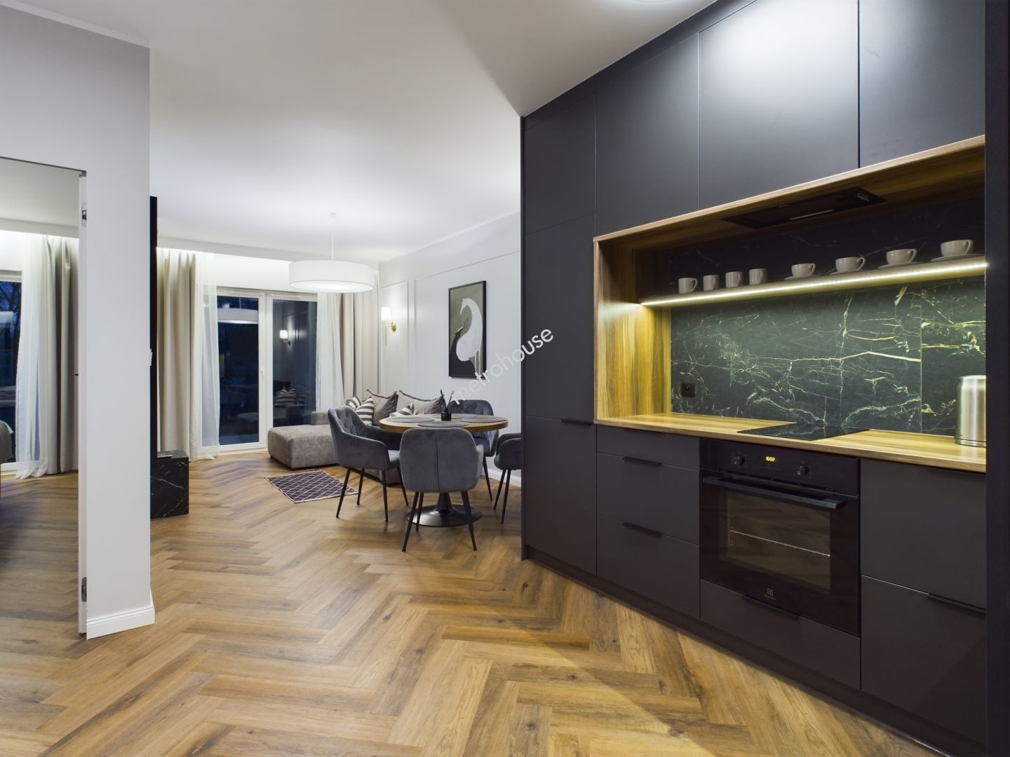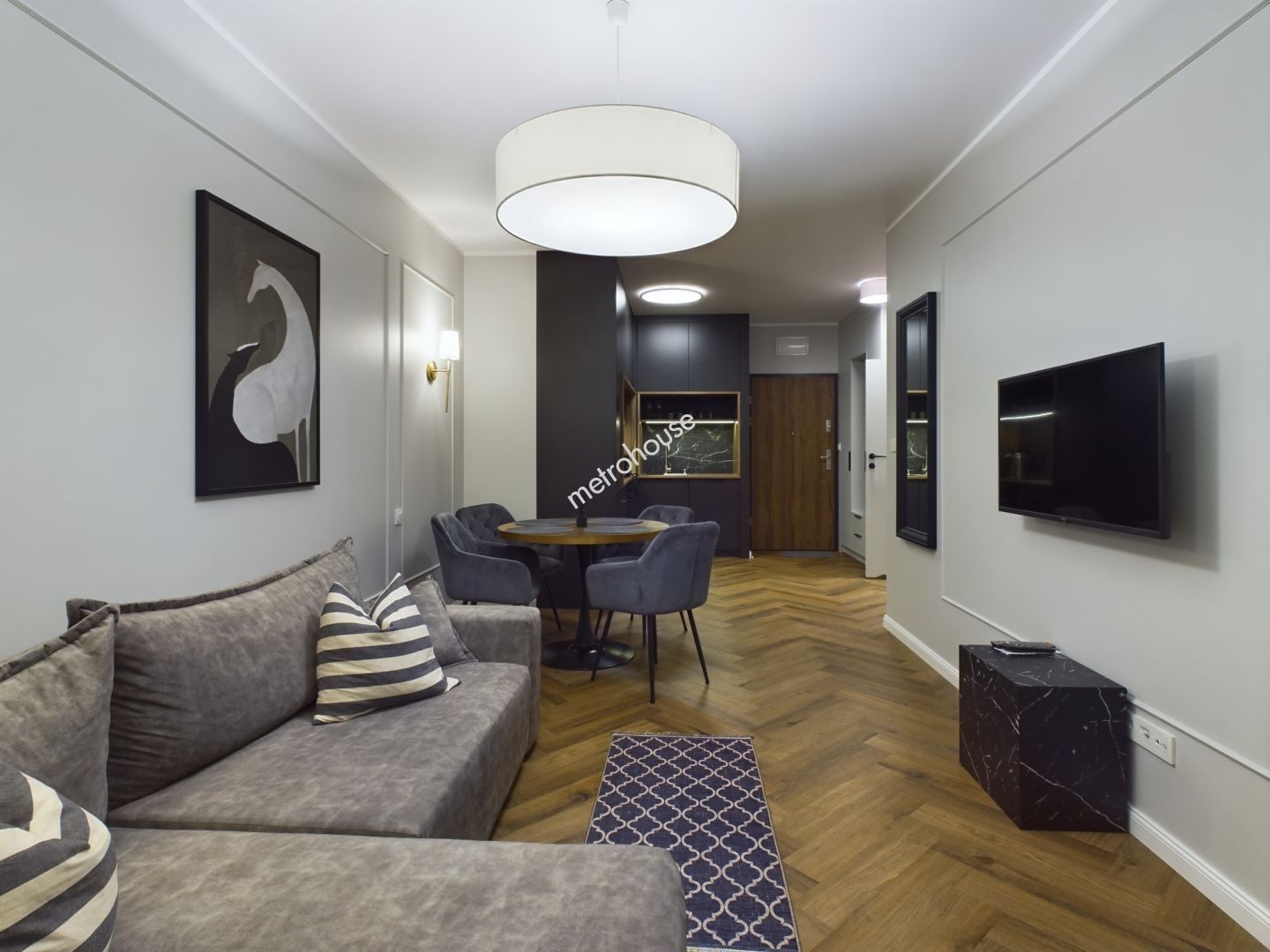 Apartament posiada pełne wyposażenie w meble i urządzenia RTV oraz AGD, co czyni go gotowym do wprowadzenia bez...