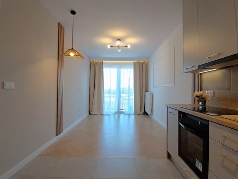 Oferujemy na sprzedaż nowoczesne mieszkanie w spokojnej dynamicznie rozwijającej się dzielnicy blisko Zalewu Zemborzyckiego. Bardzo jasne ciepłe i słoneczne dzięki dużym panoramicznym oknom. Mieszkanie o powierzchni 40 m2 położone na 5 piętrze składa się z salonu z aneksem kuchennym, oddzielnej sypialni, łazienki z WC, przedpokoju oraz przestrzennego balkonu. Kuchnia wyposażona w meble wykonane...