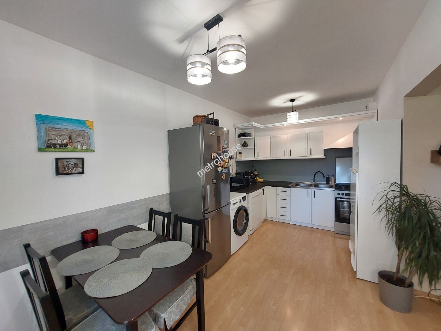 Mieszkanie o nowoczesnym rozkładzie z oddzielną sypialnią, pokojem dziecinnym lub gabinetem oraz salonem połączonym z jadalnią i aneksem kuchennym.