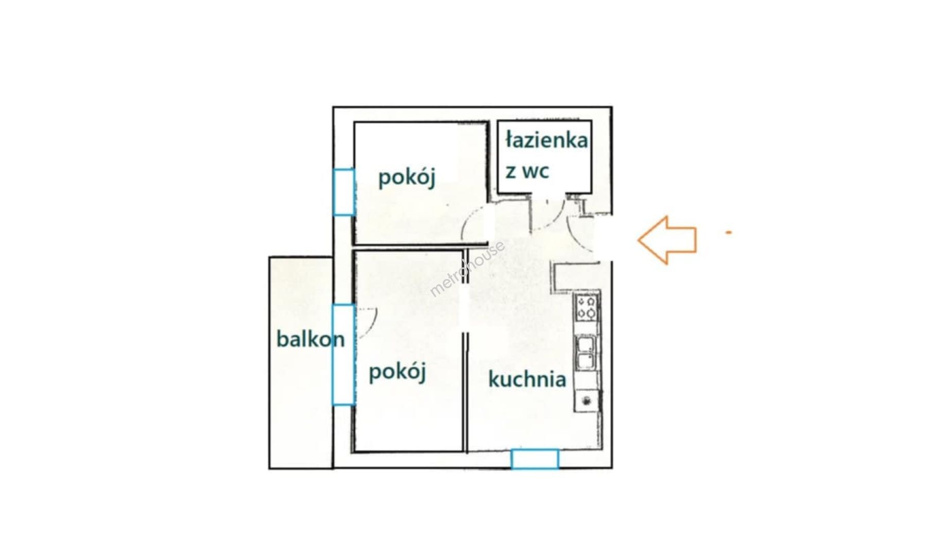 dwa niezależne pokoje świetny układ dla wynajmu dla dwóch osób,