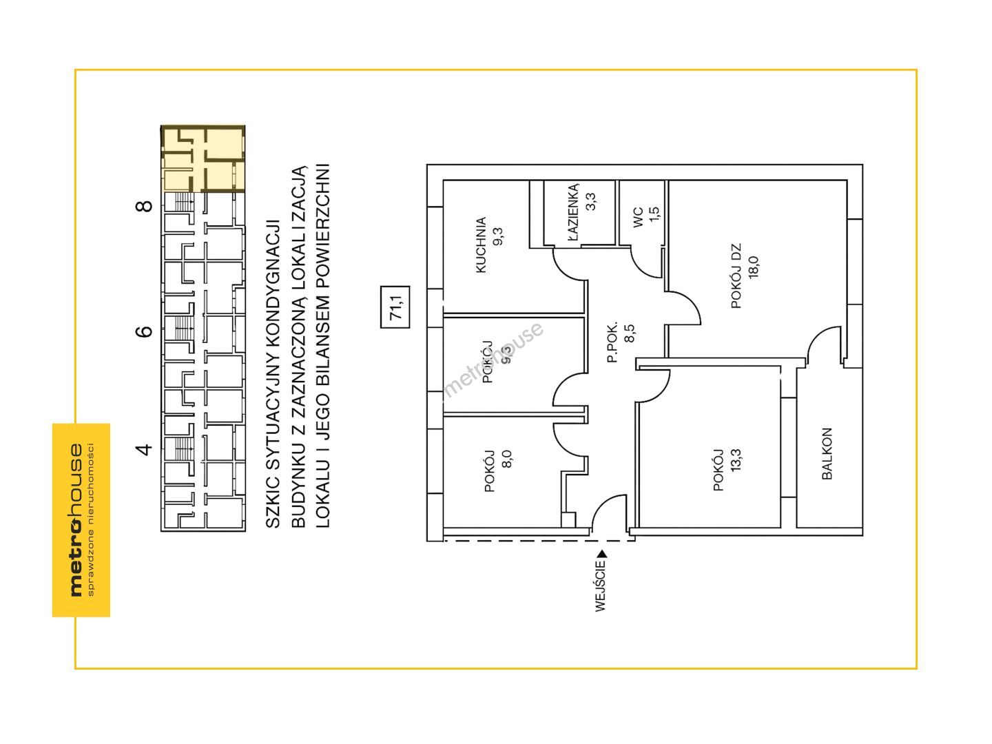 Na sprzedaż mieszkanie w bloku mieszkalnym o powierzchni użytkowej 71,1 m² za cenę 750 000 PLN, Nieruchomość składa się z czterech pokoi o powierzchni 18 m2, 13,3 m2, 9,3 m2, 8 m2, kuchni, 9,3 m2, łazienki3,2 m2, WC 1,5 M2, przedpokoju 8,5 m2 oraz przestronnego balkonu. Oferowane mieszkanie znajduje się w cichym i...