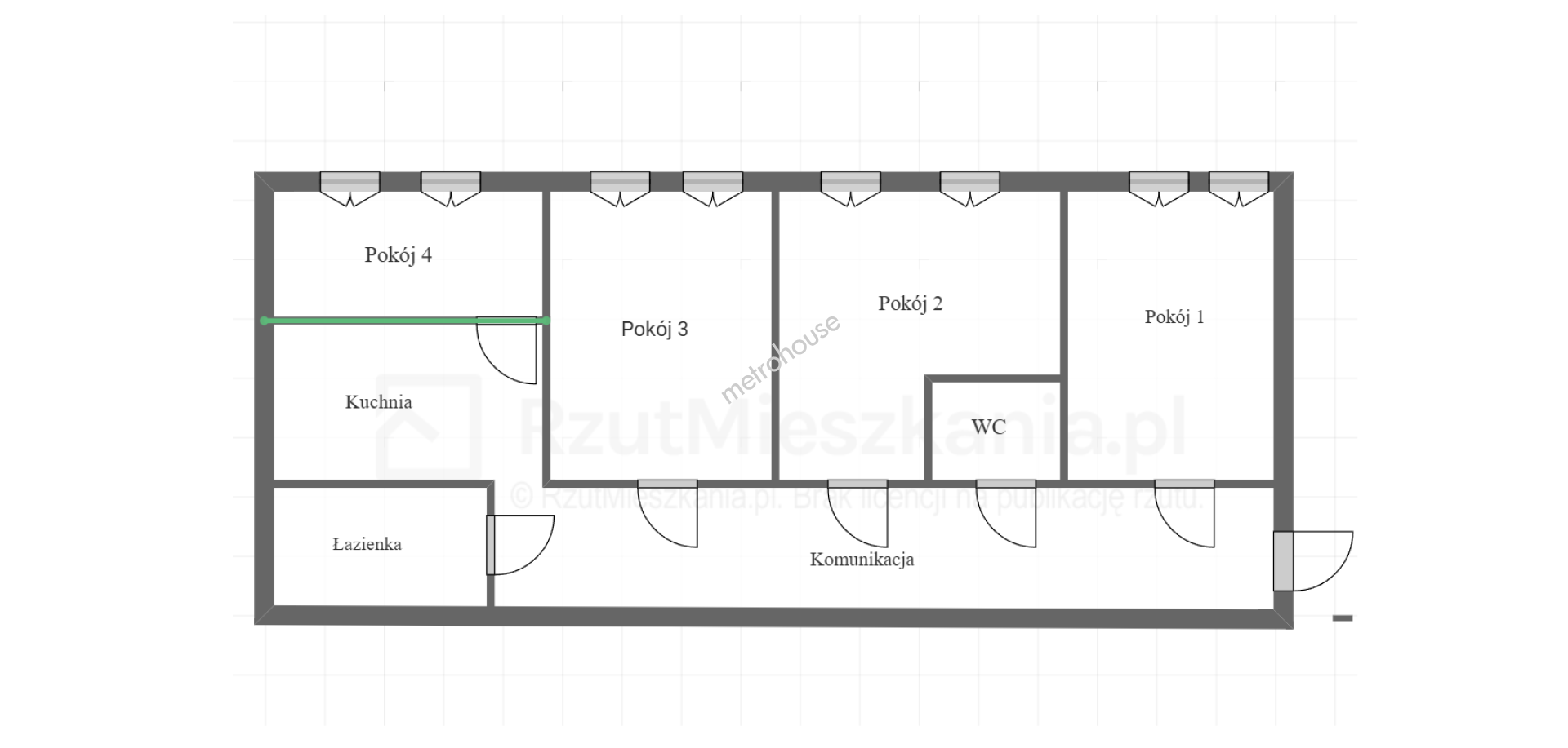 Mieszkanie składa się z 4 oddzielnych pokoi, łazienki, WC, komunikacji oraz kuchni z jadalnią o łącznej powierzchni 85m2