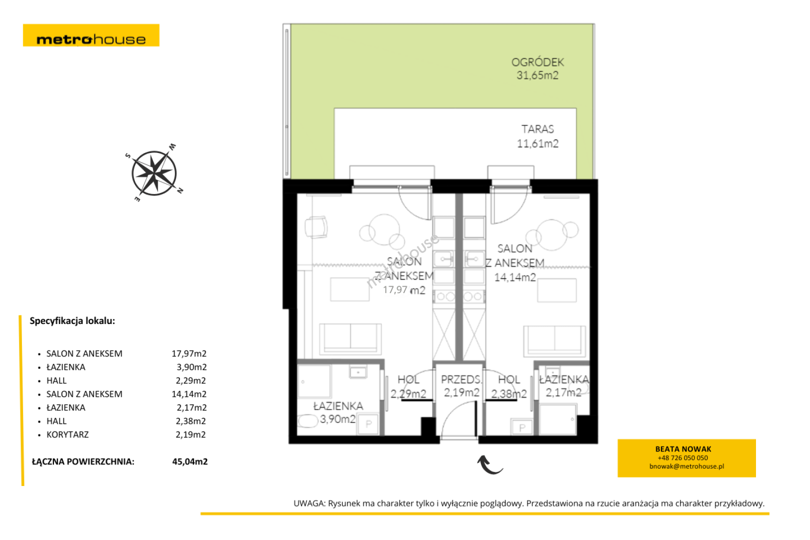 Wyjątkowy układ mieszkania pozwolił na wydzielenie dwóch niezależnych apartamentów typu studio, co umożliwia prowadzenie dwóch oddzielnych najmów z jednej nieruchomości.