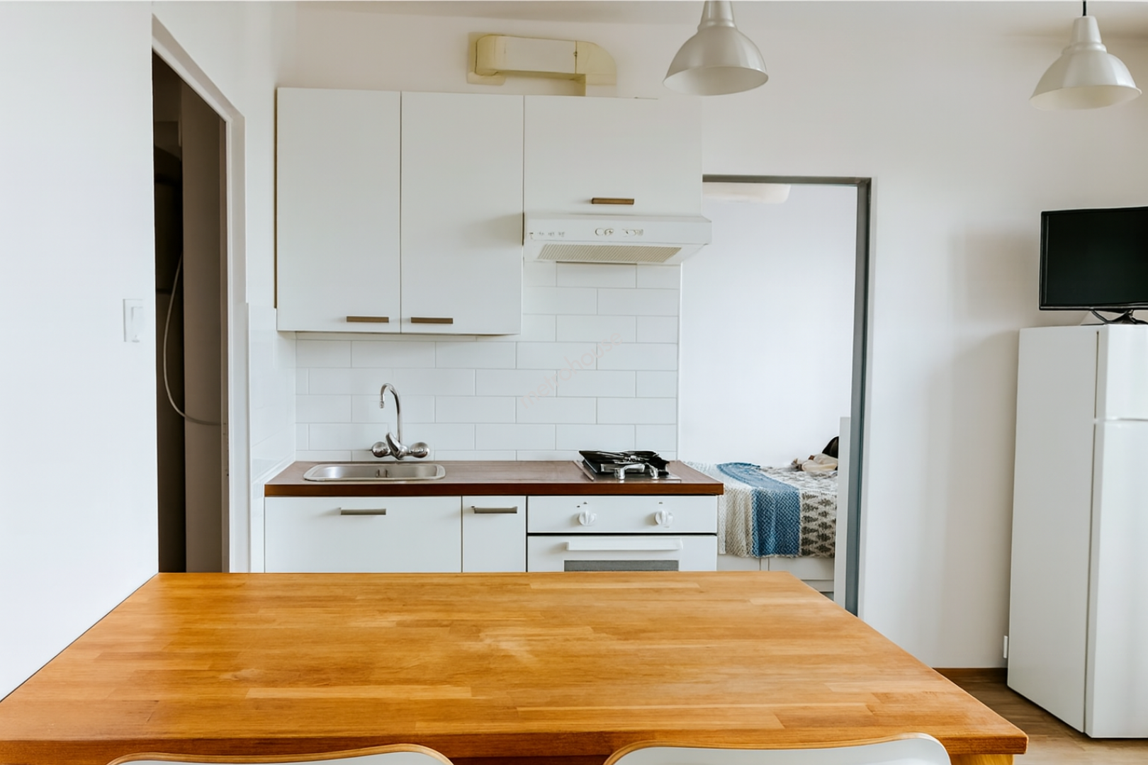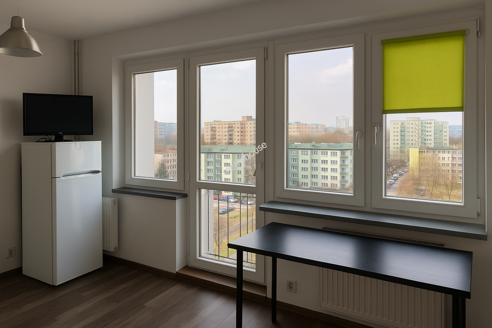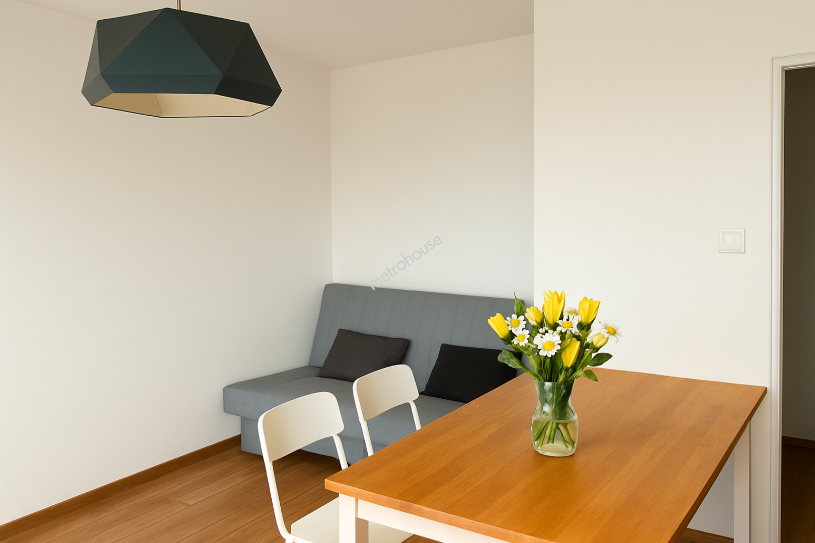 - jasny salon z aneksem kuchennym,