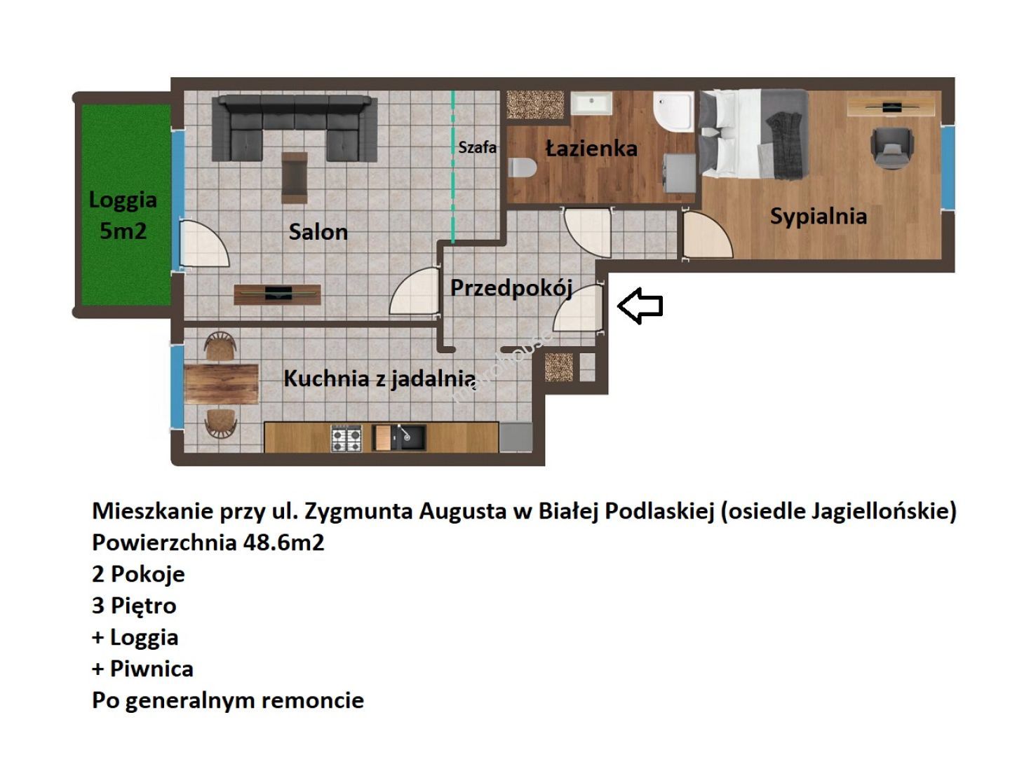 Na sprzedaż przytulne mieszkanie po generalnym remoncie, położone na osiedlu Jagiellońskim, przy ul. Zygmunta Augusta w Białej Podlaskiej.