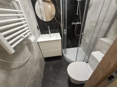 W mieszkaniu dwa lata temu przeprowadzono remont generalny. Objął wymianę instalacji elektrycznej, grzewczej, wodno-kanalizacyjnej, remont ścian, sufitów i podłóg.