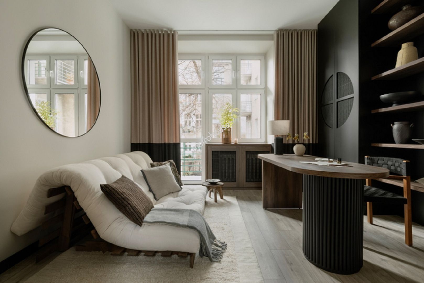 Urzekający apartament Zen in Japan na pierwszym piętrze zabytkowej łódzkiej kamienicy z podwójnym balkonem.