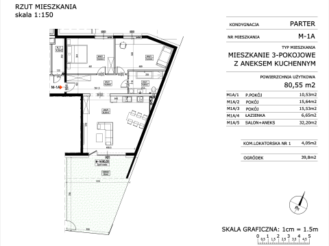 Salon z aneksem kuchennym i dwie sypialnie + własny taras z ogródkiem o powierzchni 40 m² i komórka lokatorska 4 m²