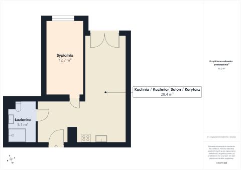 funkcjonalny rozkład, 47m2 - salon z aneksem, sypialnia,...