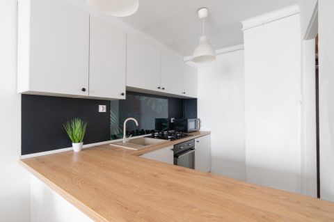 Lokal o powierzchni 35 m² charakteryzuje się funkcjonalnym i przemyślanym układem.