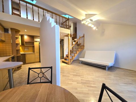 Przedstawiam do sprzedaży interesujące, dwupoziomowe mieszkanie przy ul. Saskiej w Krakowie. Powierzchnia użytkowa mieszkania wynosi 52 m2, natomiast uwzględniając drugi poziom wraz ze skosami powierzchnia mieszkania wynosi 65,5 m2! Lokal jest bardzo przestrzenny i wysoki (wysokość w miejscach bez skosów waha się pomiędzy 2,7m a 3,4 m). Na drugim poziomie mieszkania wysokość wynosi ok. 2 m w szczycie, więc nawet osoba wysoka może się komfortowo...
