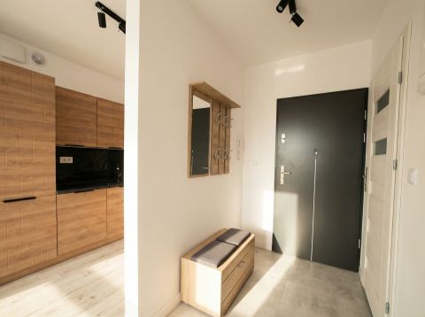 Na sprzedaż funkcjonalne i w pełni wyposażone mieszkanie o powierzchni 45,86 m², zlokalizowane na 2. piętrze nowoczesnego budynku z windą przy ul. Złotej w Katowicach (Dąb).